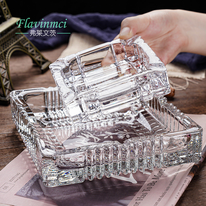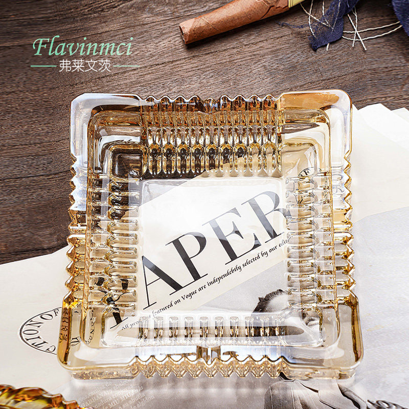 弗莱文茨七彩欧式四方条纹水晶玻璃品质烟缸烟灰缸男士专用