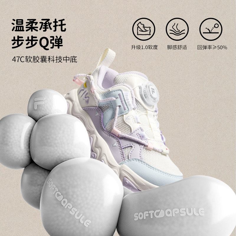 FILA斐乐儿童童鞋跑步鞋2026春季新款男女小童旋钮扣运动鞋子猫爪