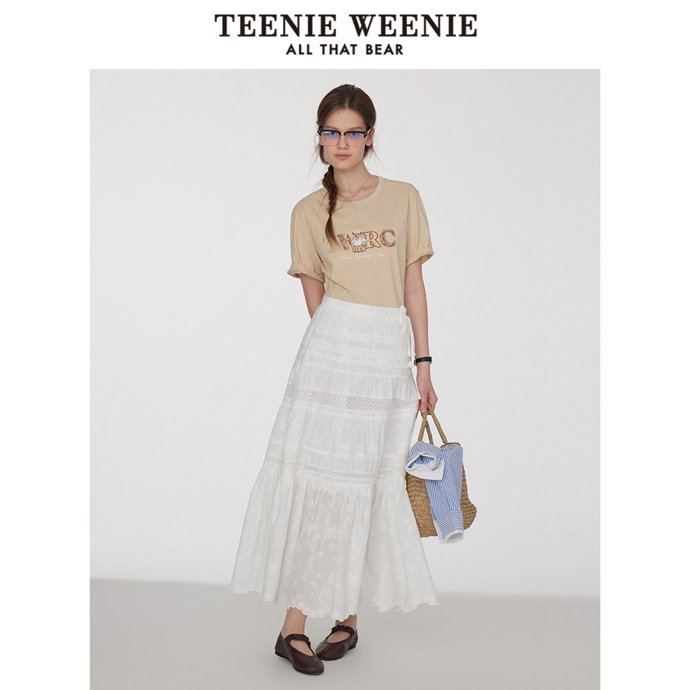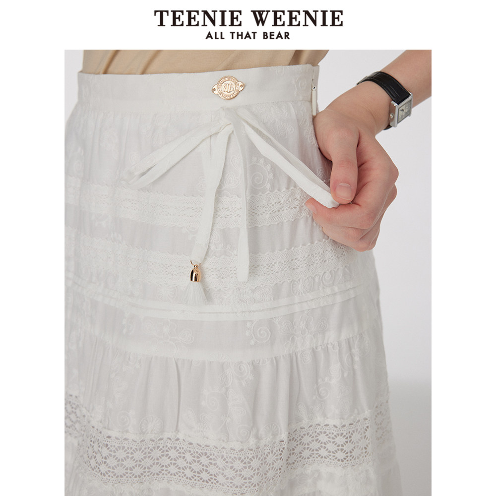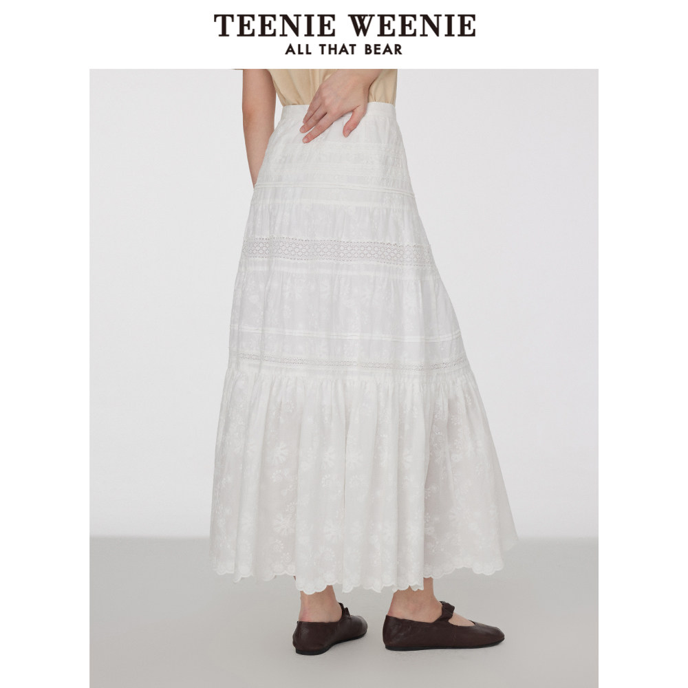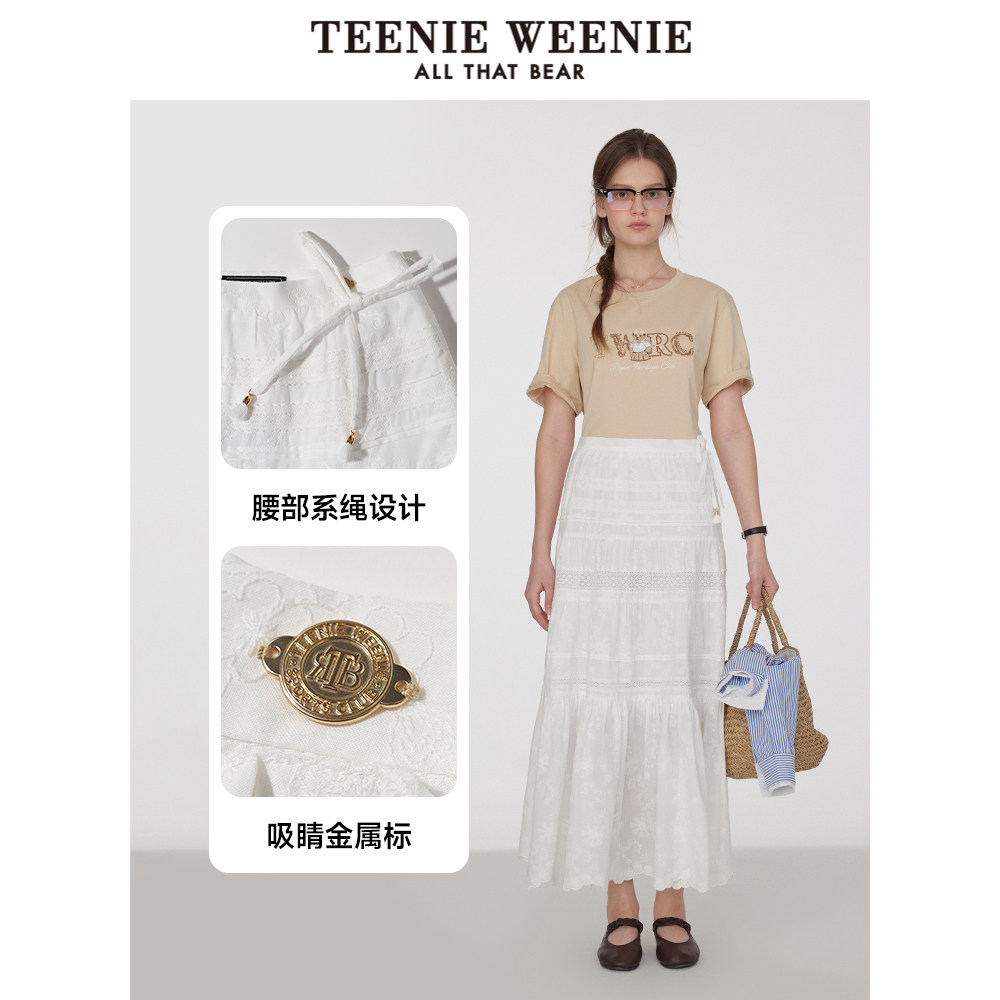 TeenieWeenie小熊奥莱半身裙2025年夏季新款优雅气质刺绣中长白裙