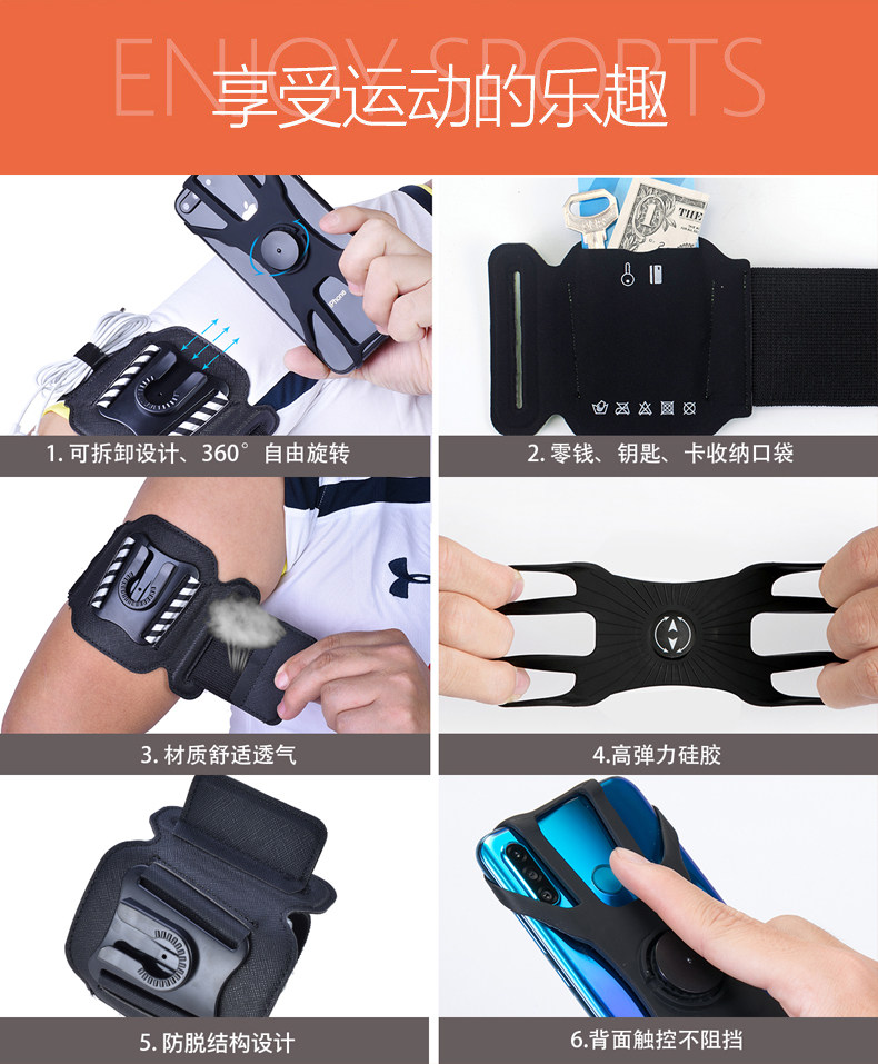 代驾外卖快递用可拆卸旋转手腕带臂带自行车支架跑步手机导航支架