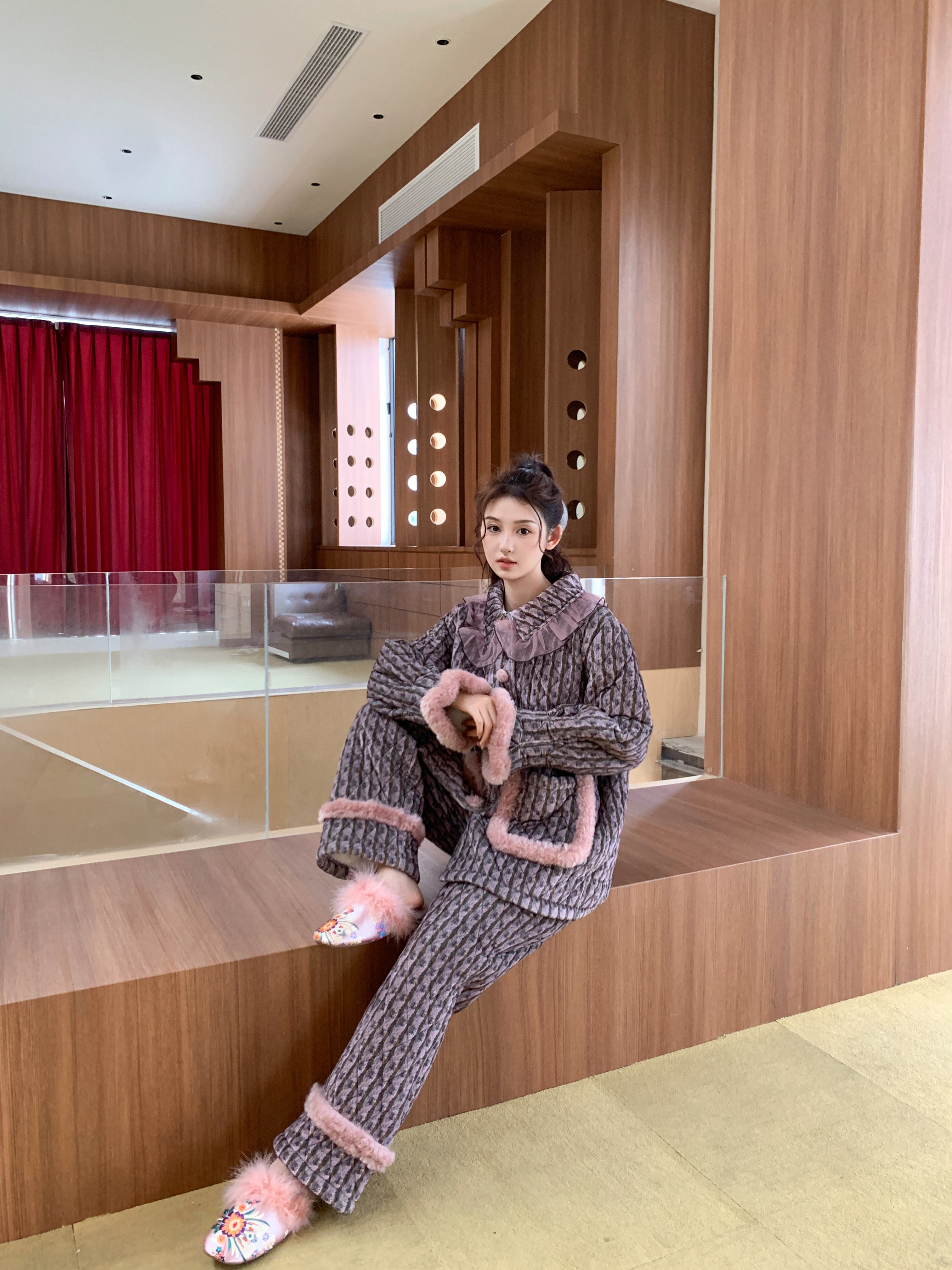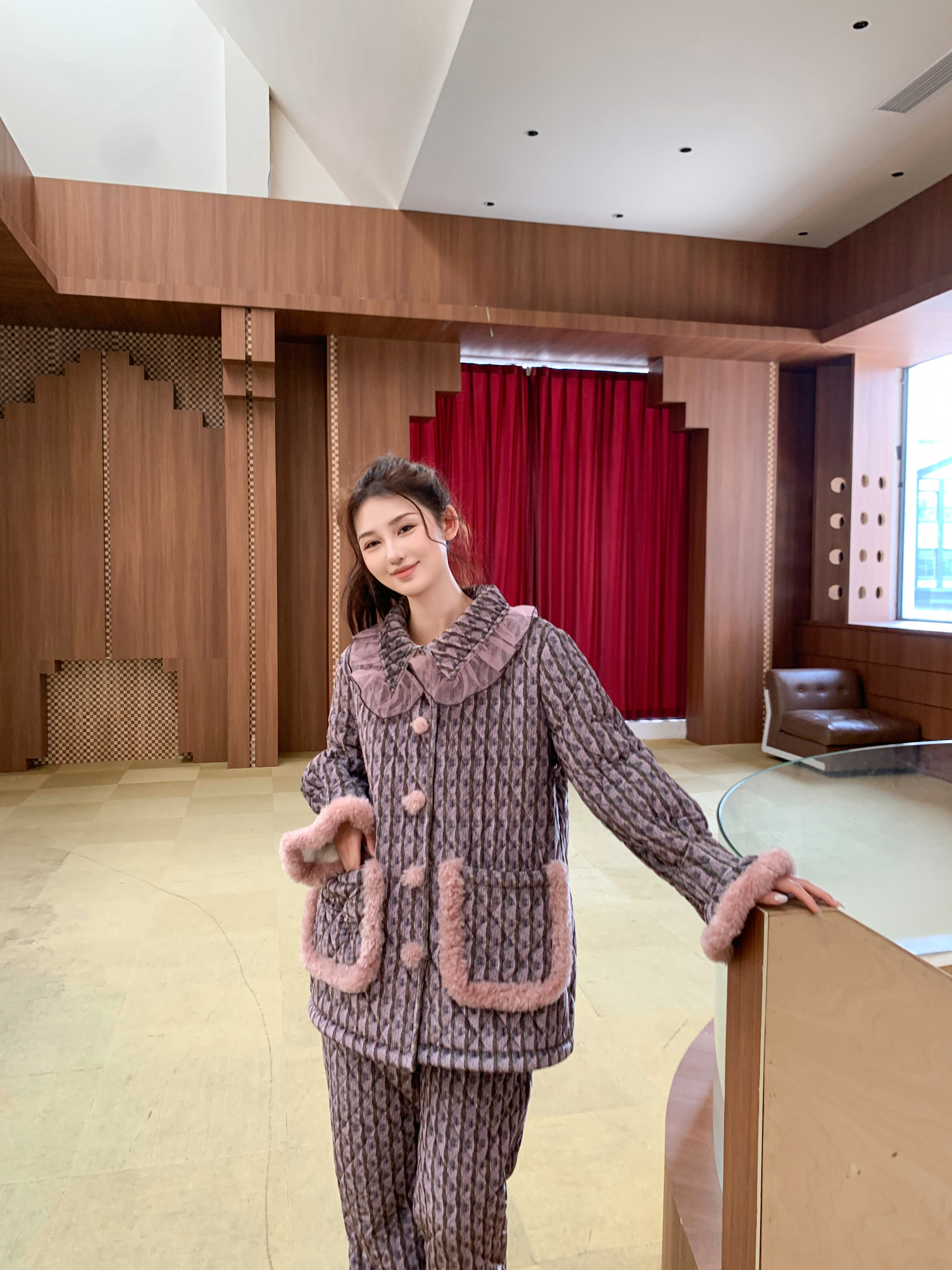原艾慕优暗香疏影三层夹棉加绒加厚可外穿女士甜美冬季睡衣套装