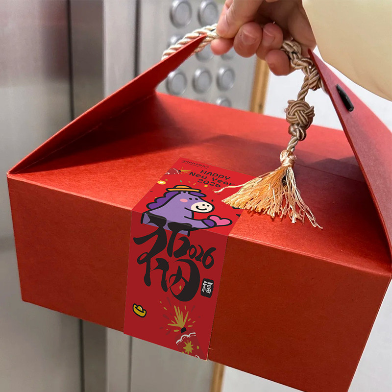 2026新年贴纸定制伴手礼盒子装饰封口贴春节公司logo商标设计咖啡奶茶店杯子贴画年货腊肉标签马年不干胶定做