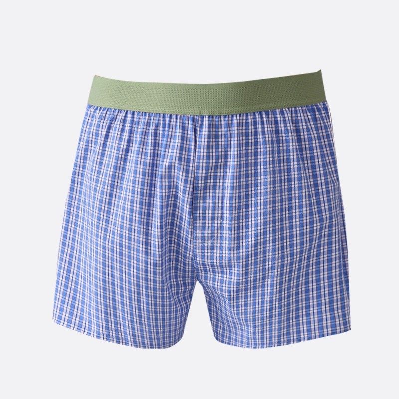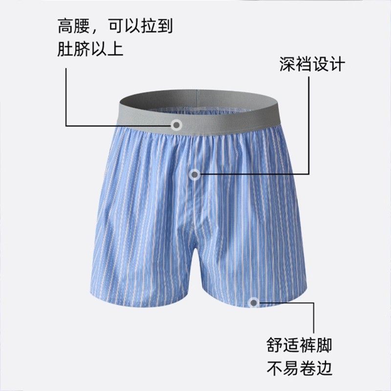 阿罗裤男士格子纯棉平角裤加大码宽松居家打底休闲条纹薄四角短裤