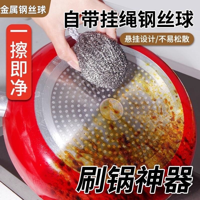 加密挂绳钢丝球带不锈钢洗碗清洁球大号铁丝油污神器厨房橄榄钢丝