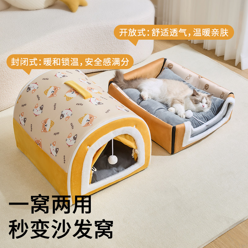 皮皮猫窝冬季保暖封闭式猫房子帐篷猫屋四季通用可拆洗狗窝大防风