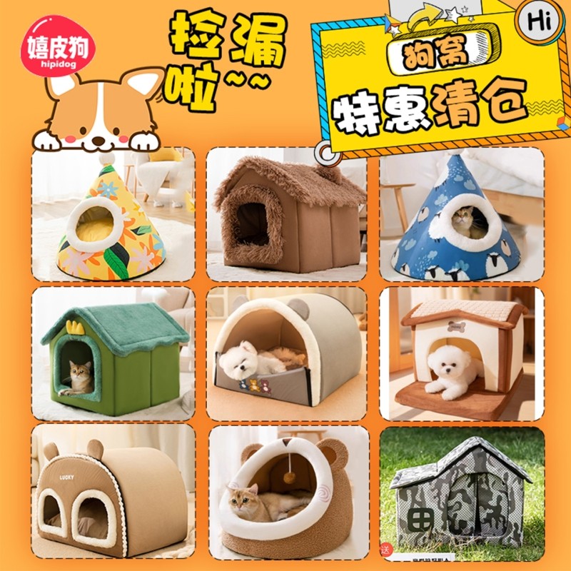 清仓狗窝猫窝冬天保暖四季通用半封闭式大中小型冬季窝垫可拆洗