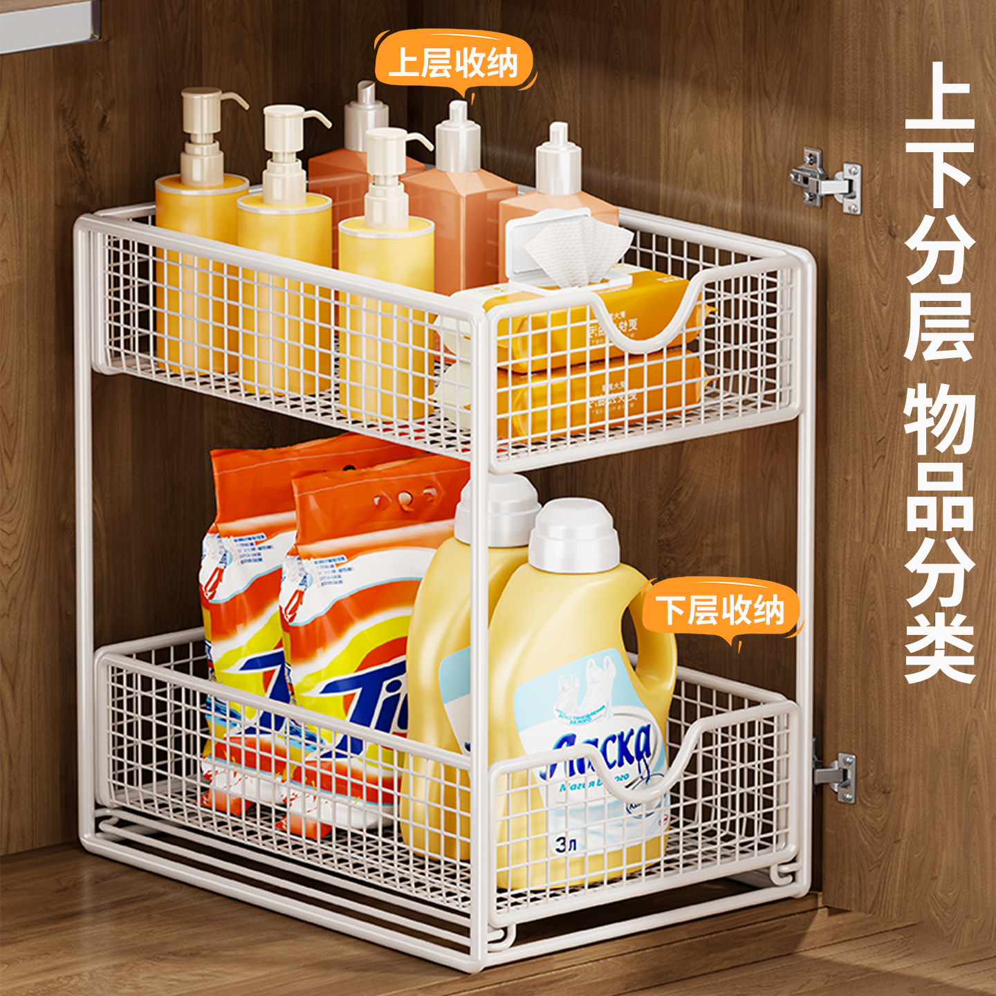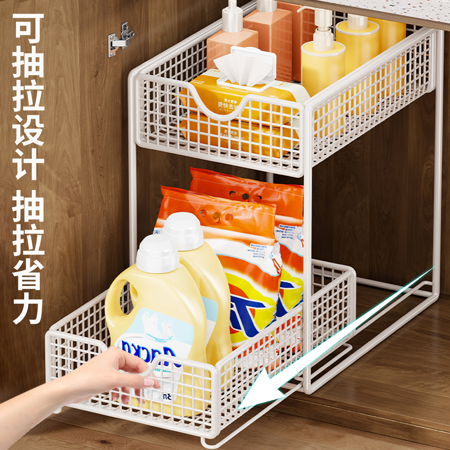 洗漱台下置物架卫生间浴室柜内可抽拉收纳神器拉篮分层水槽网格
