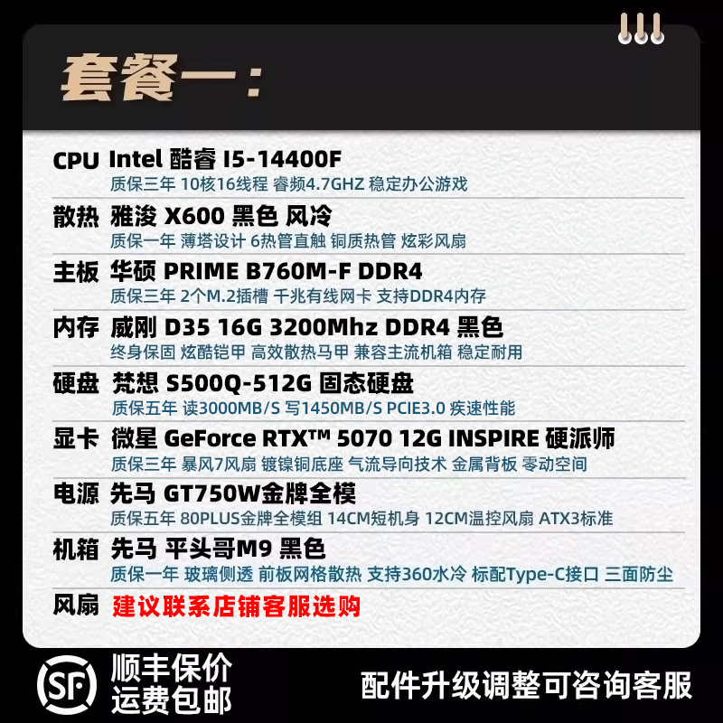 装机猿玩家店 微星RTX5070 硬派师 12G/14400F/12600KF游戏主机