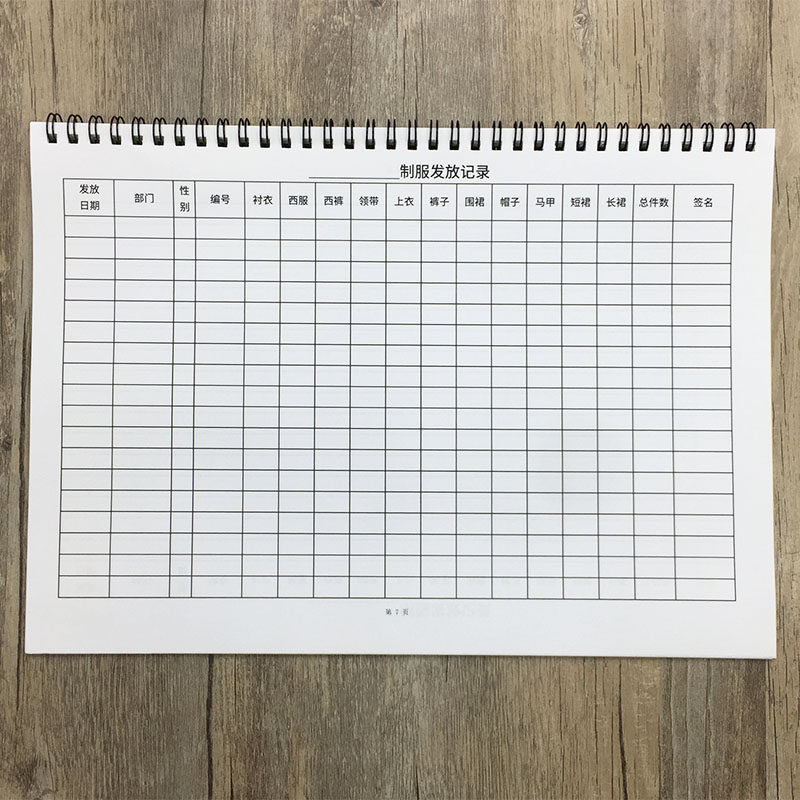工作制服发放记录本餐饮店工作服发放登记本工作服发放登记表工作