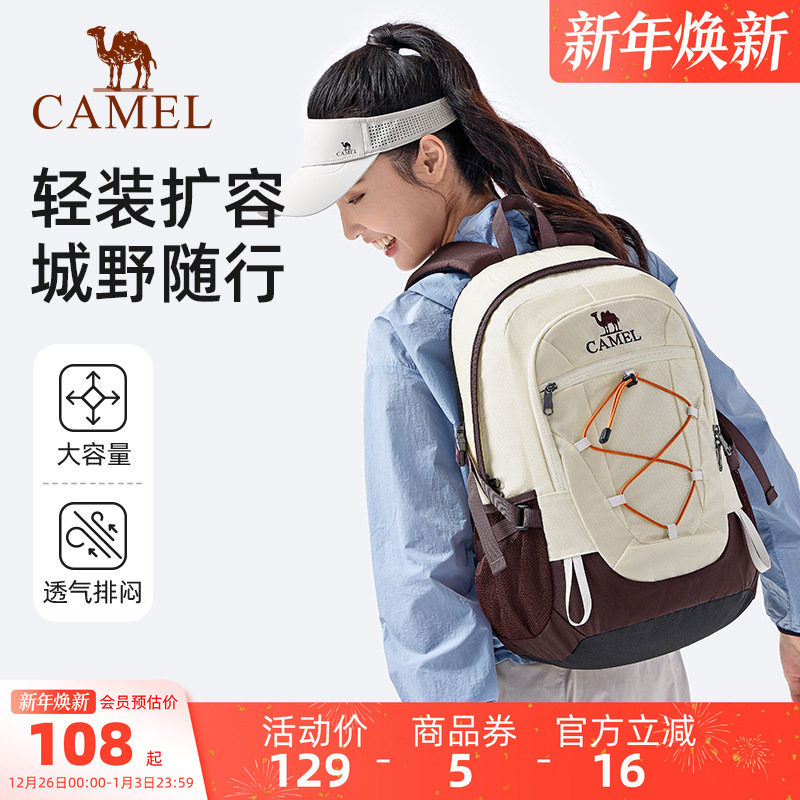 骆驼双肩包通勤学生书包大容量旅行轻便休闲旅游运动背包登山包