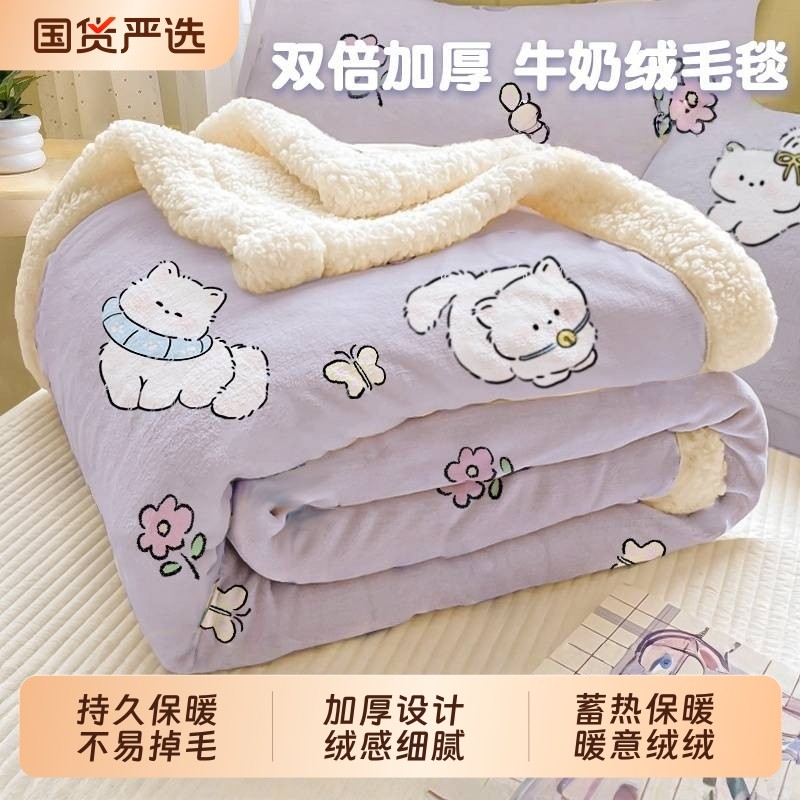 A类牛奶绒毛毯冬季盖毯可机洗单人宿舍毯披肩午睡毯双面绒床单厚