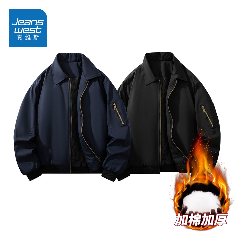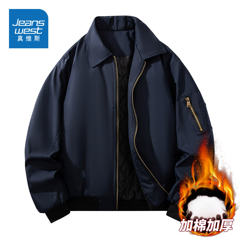 N5真维斯棉服男款2025新款冬季加厚保暖宽松翻领棉衣冬装夹克外套