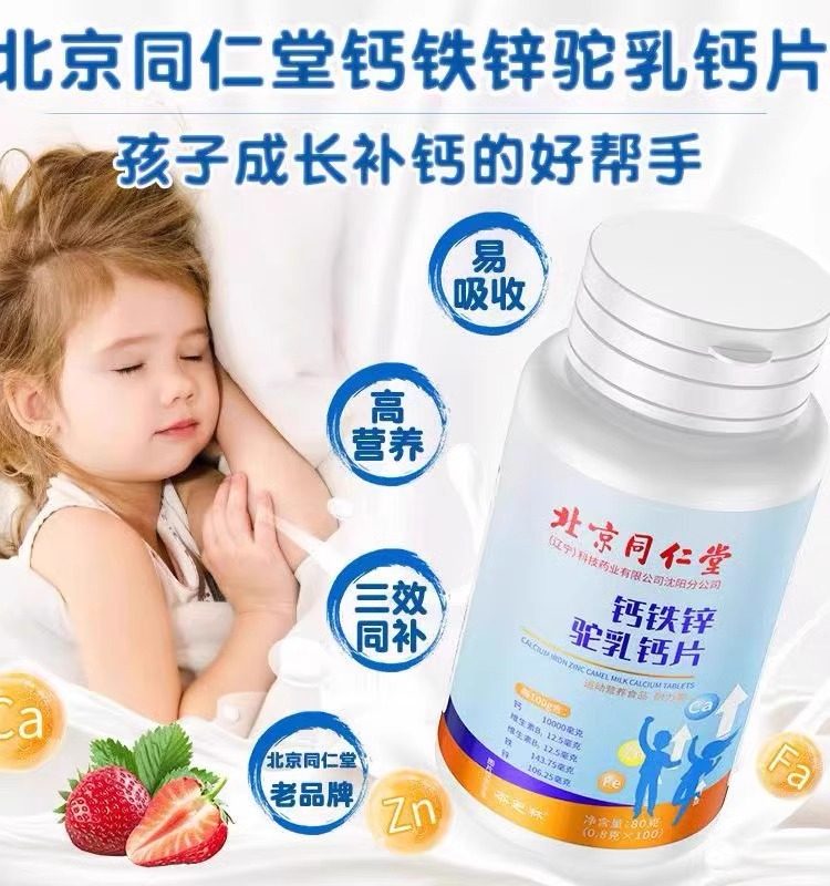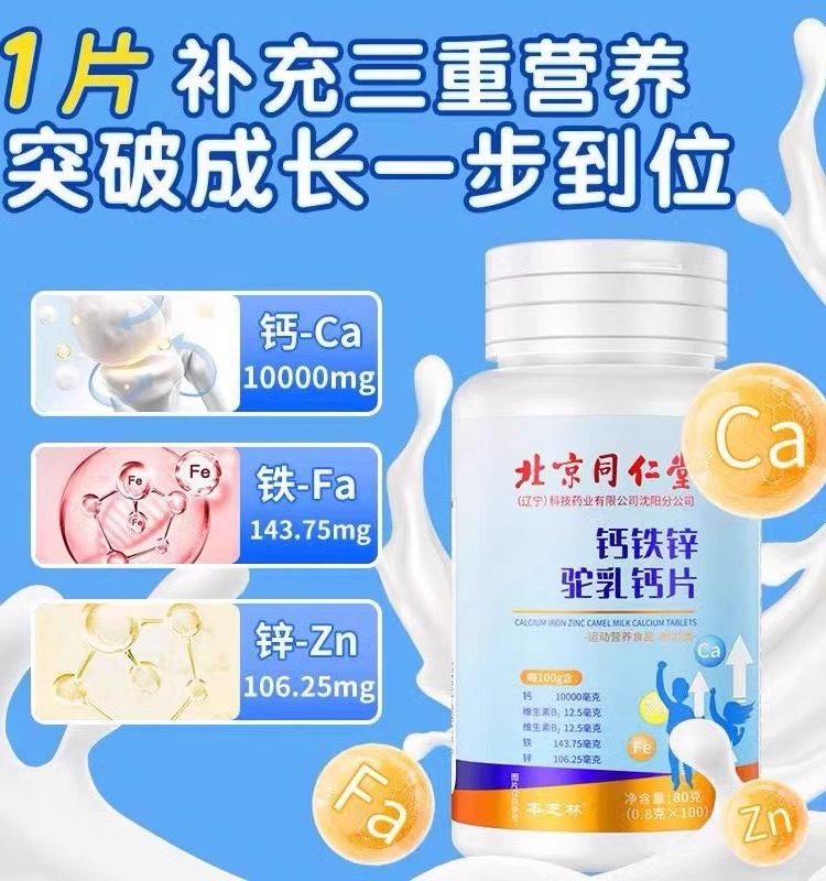 北京钙铁锌驼乳钙片青少年儿童钙片长高补锌咀嚼片成长补钙助力
