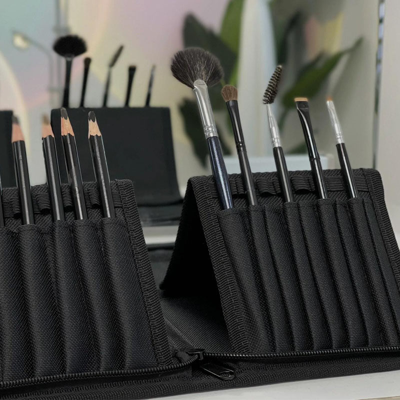 纹绣师眉笔收纳神器可立式折叠高级化妆刷包插笔袋便携刷子盒工具