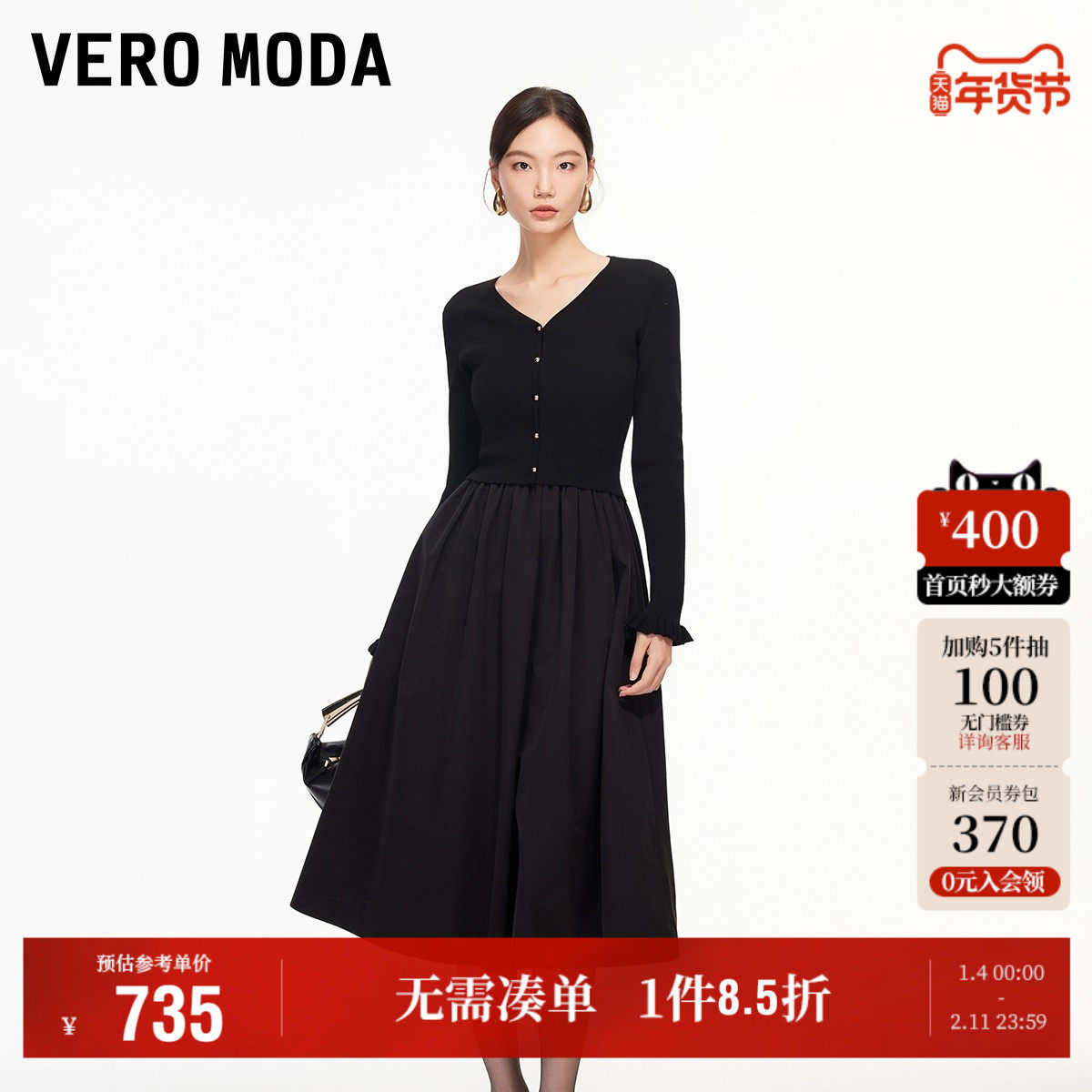 Vero Moda奥莱连衣裙女2026春新款优雅气质开衫小黑裙真两件裙子