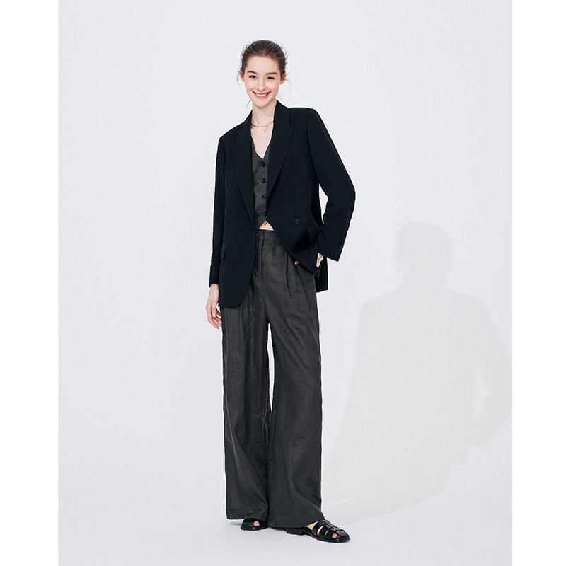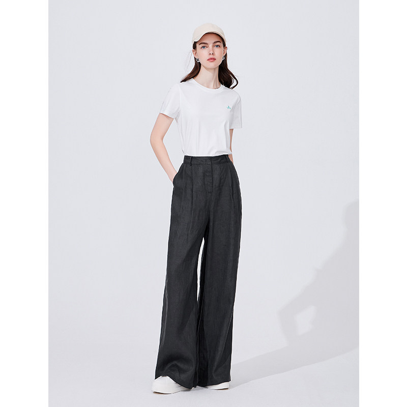 [亚麻]Navigare意大利小帆船宽松休闲裤女秋季高级感显瘦阔腿裤
