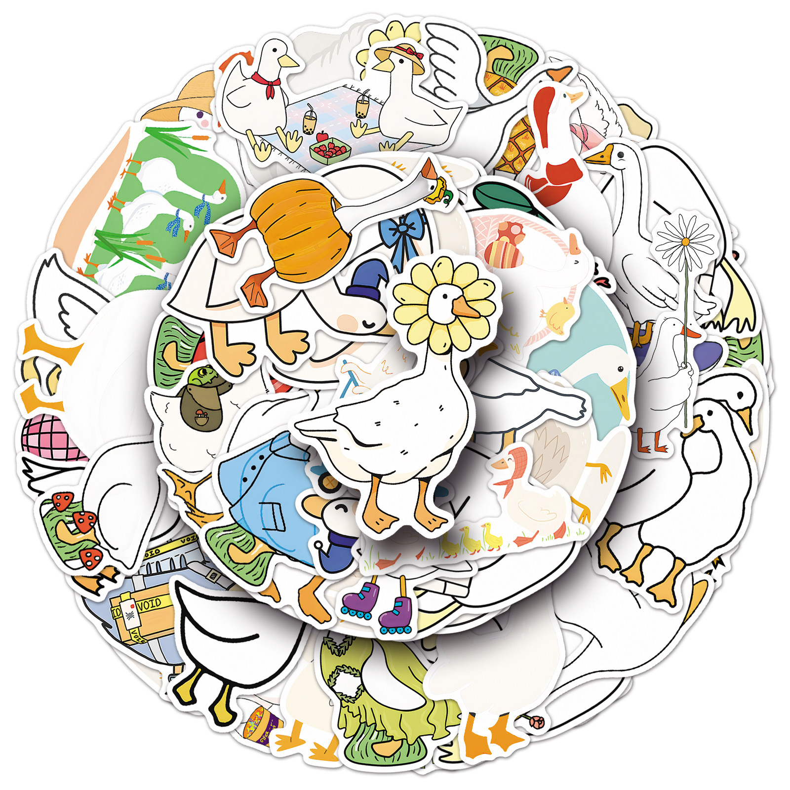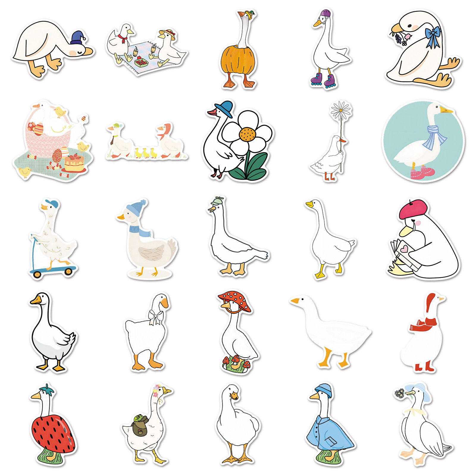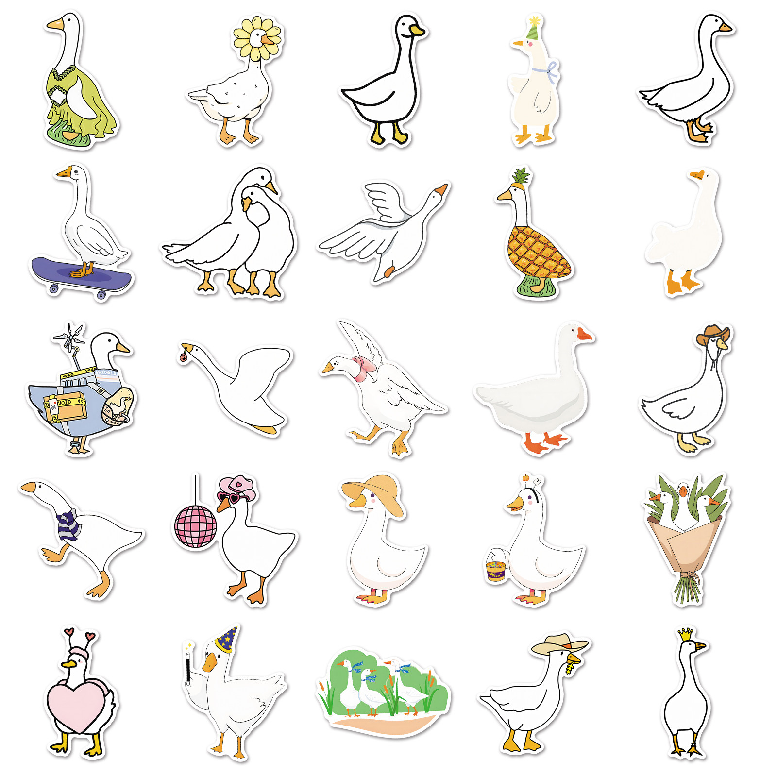 100张大白鹅卡通动物贴纸可爱小鸭子DIY防水装饰笔记本电脑相册旅行箱自行车文具头盔电动车滑板水杯冰箱贴画