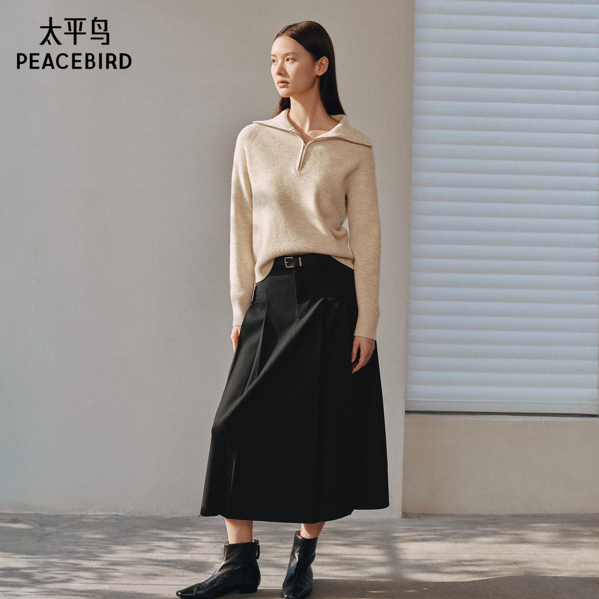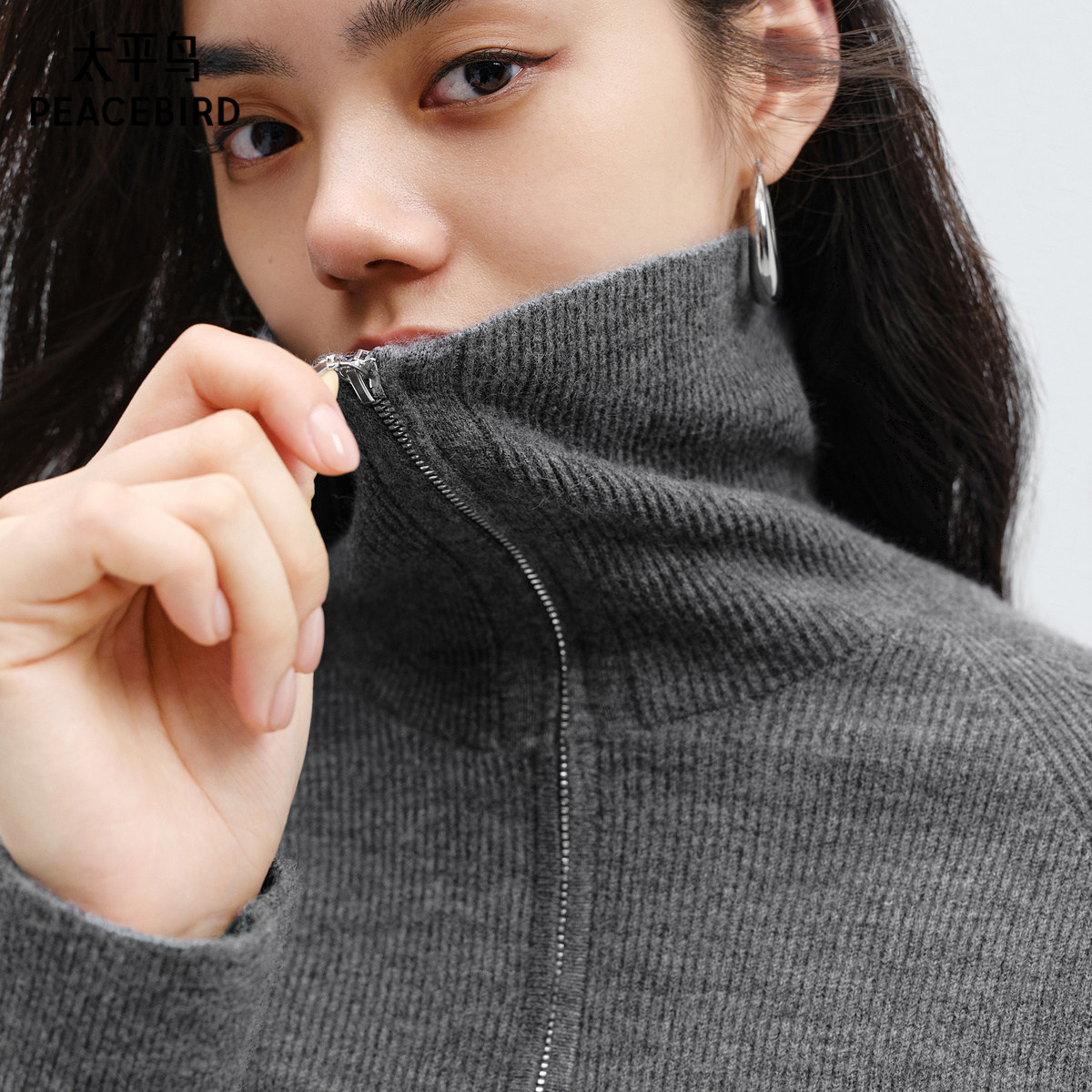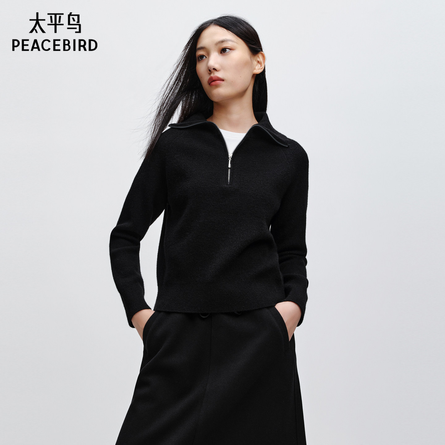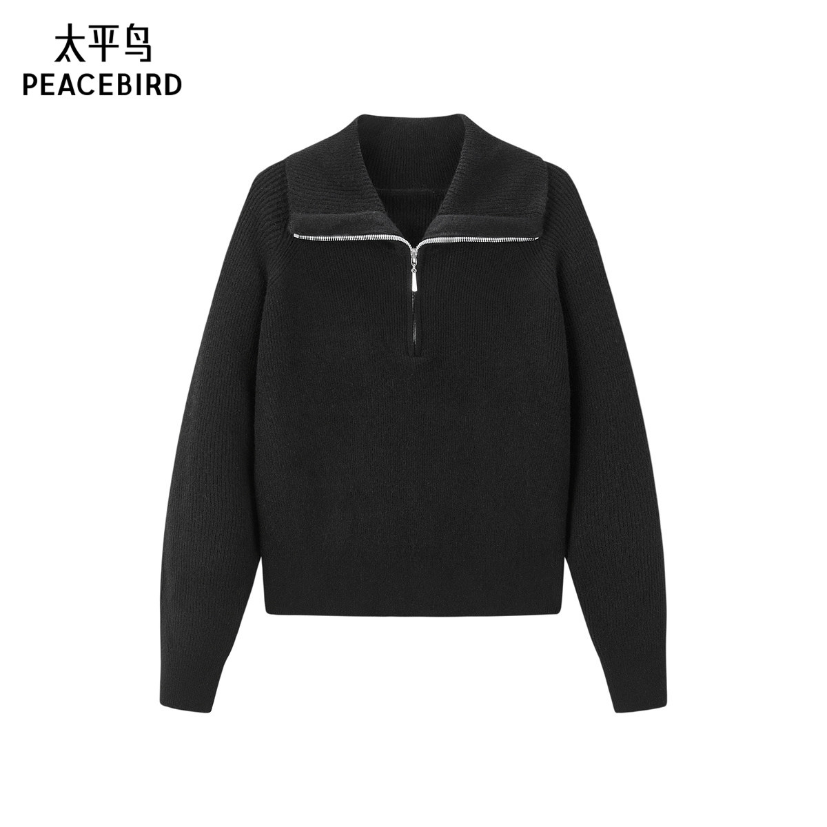 太平鸟软糯半门襟翻领毛衫女冬装款针织衫上衣气质内搭毛衣