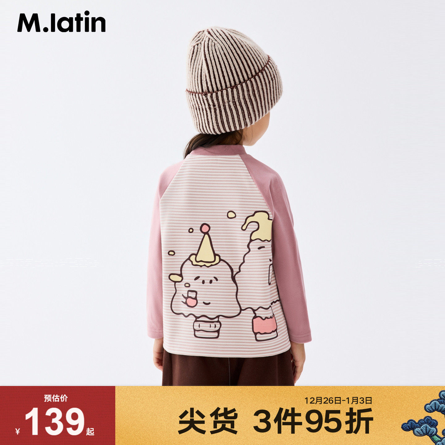 马拉丁童装儿童T恤25冬装新款男女小童德绒条纹拼接半高领T恤