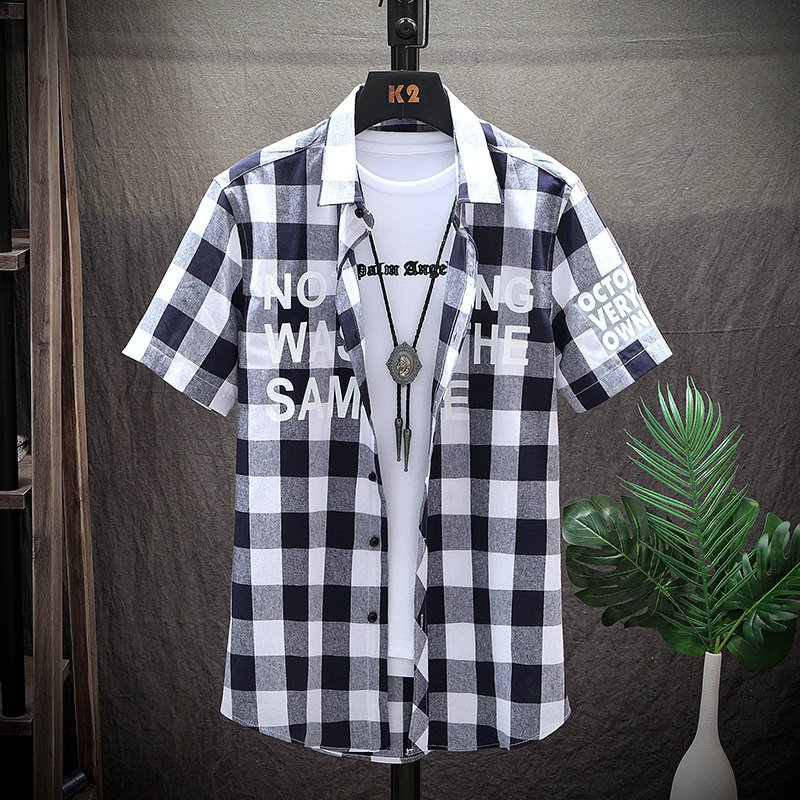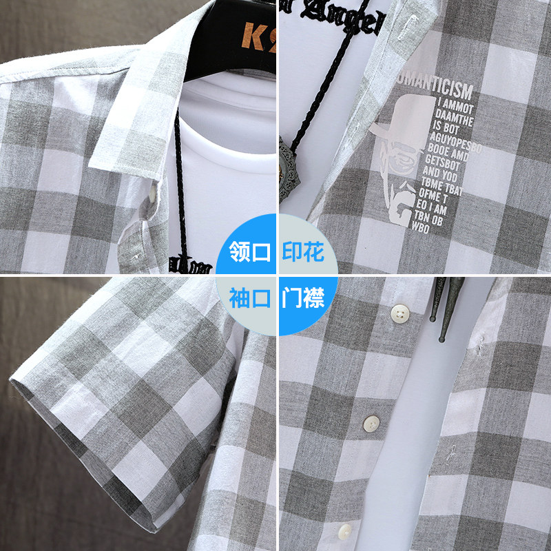 男士短袖衬衫休闲夏季白色半袖衬衣韩版潮流帅气夏装中学生上衣服