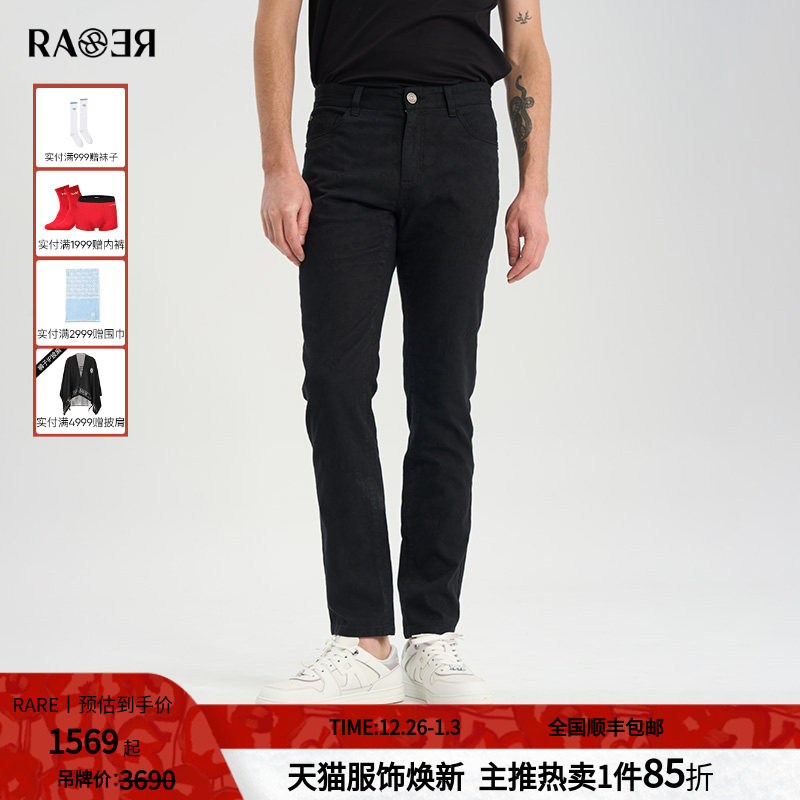 RARE威雅男裤春夏新款薄款休闲裤子 男士黑色修身水洗牛仔裤