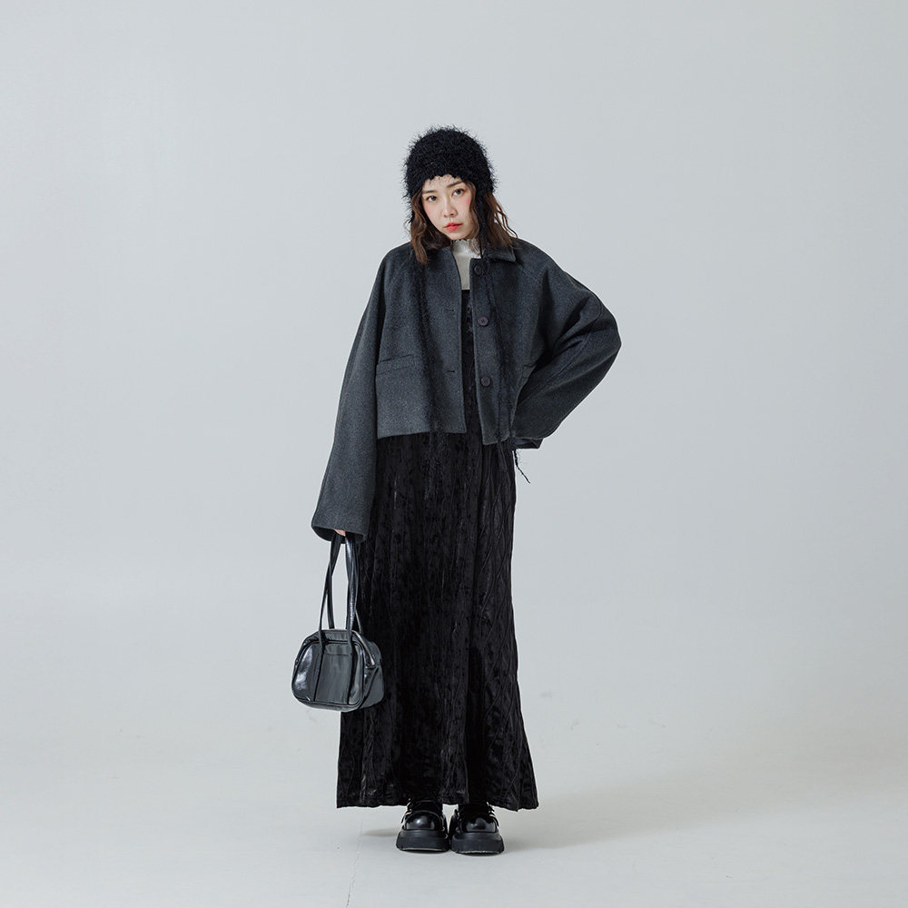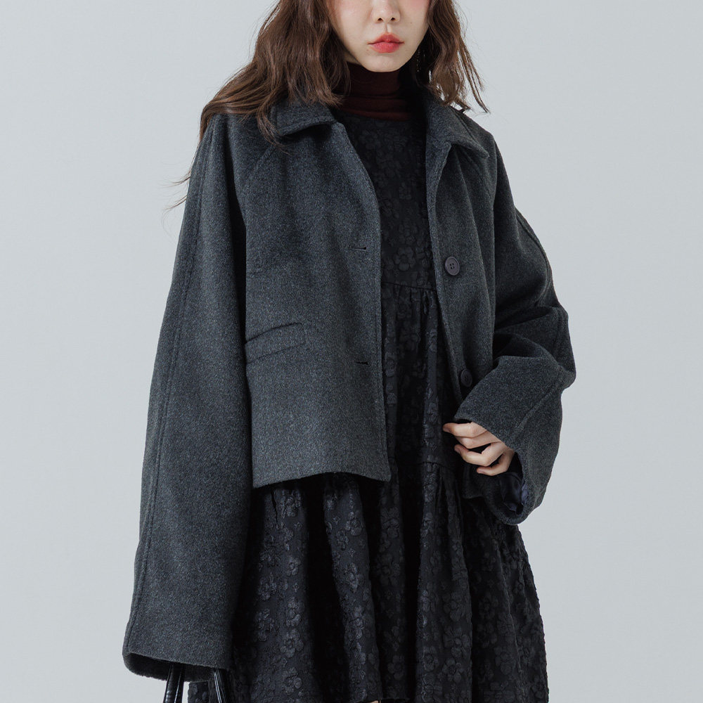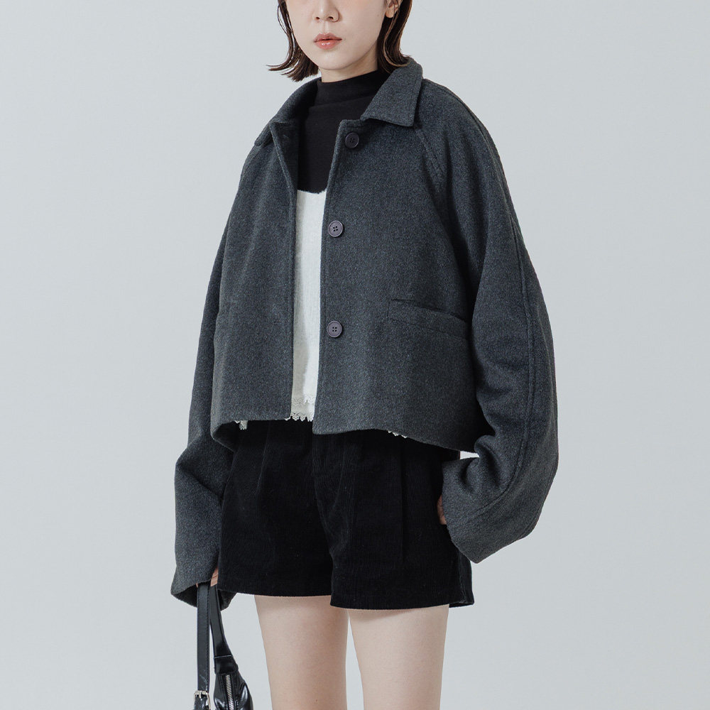QUEENSHOP 2025秋冬新品女装质感毛呢排釦短版外套深灰02071670