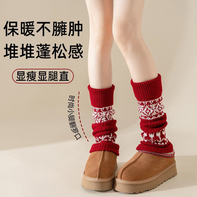 2026新款红色袜套堆堆袜小腿袜子女长筒腿套秋冬加厚护腿新年中筒