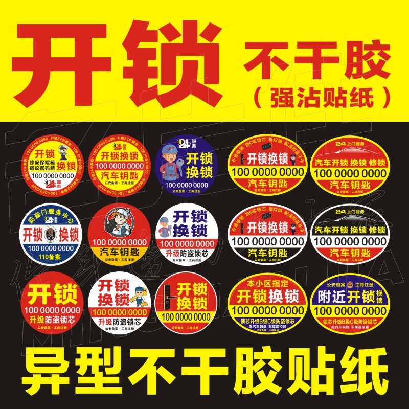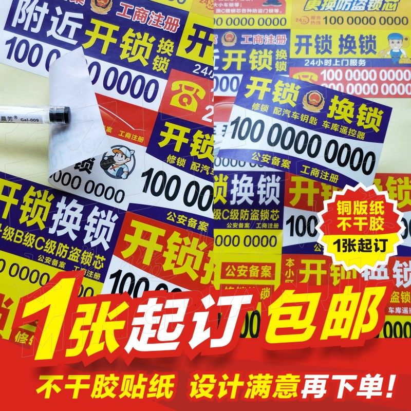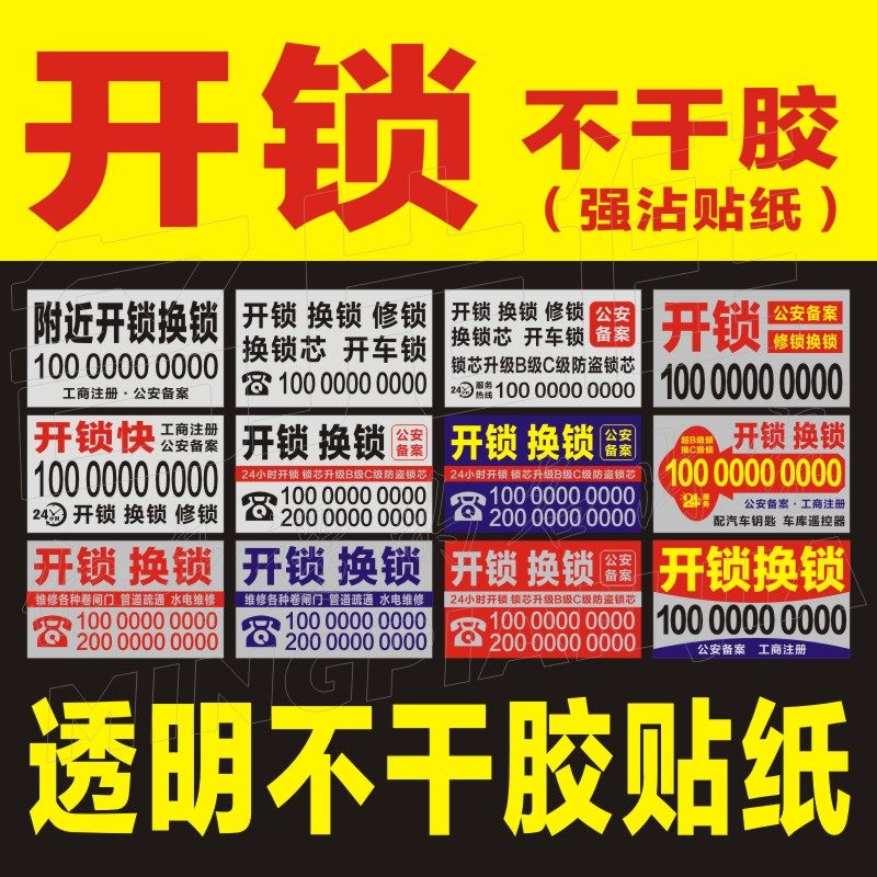 开锁换锁修锁配锁车锁不干胶小广告贴纸透明标签粘胶户外防水材质