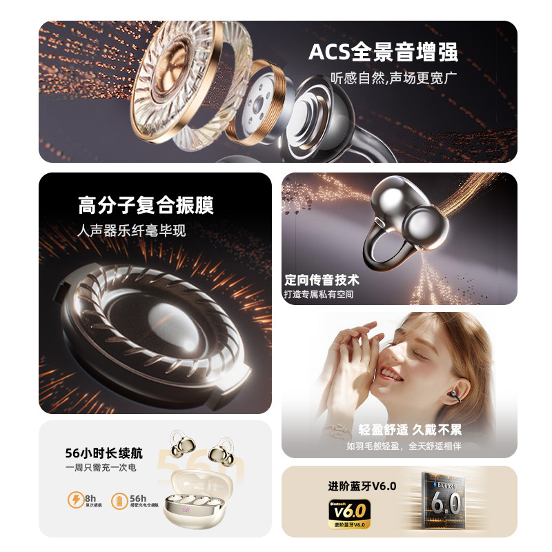 弱水时砂openfeel夹耳式蓝牙耳机挂耳HIFi运动跑步开放式专用耳机