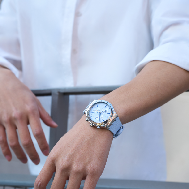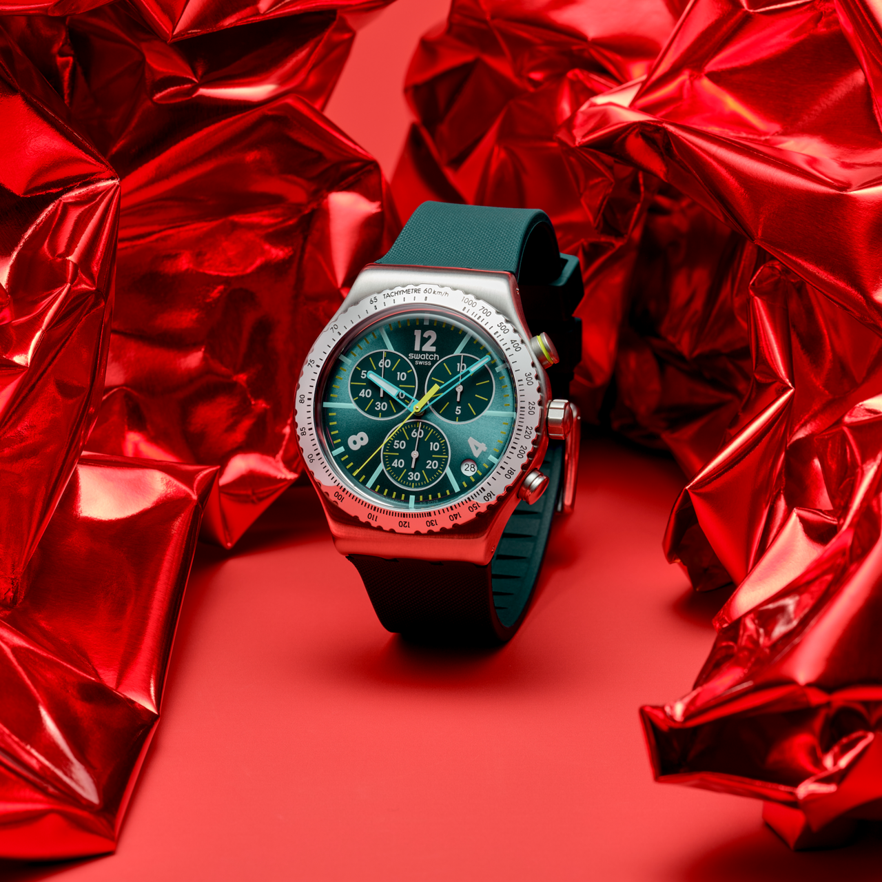 Swatch斯沃琪瑞士新款手表三眼计时学生日历金属运动腕表圣诞礼物