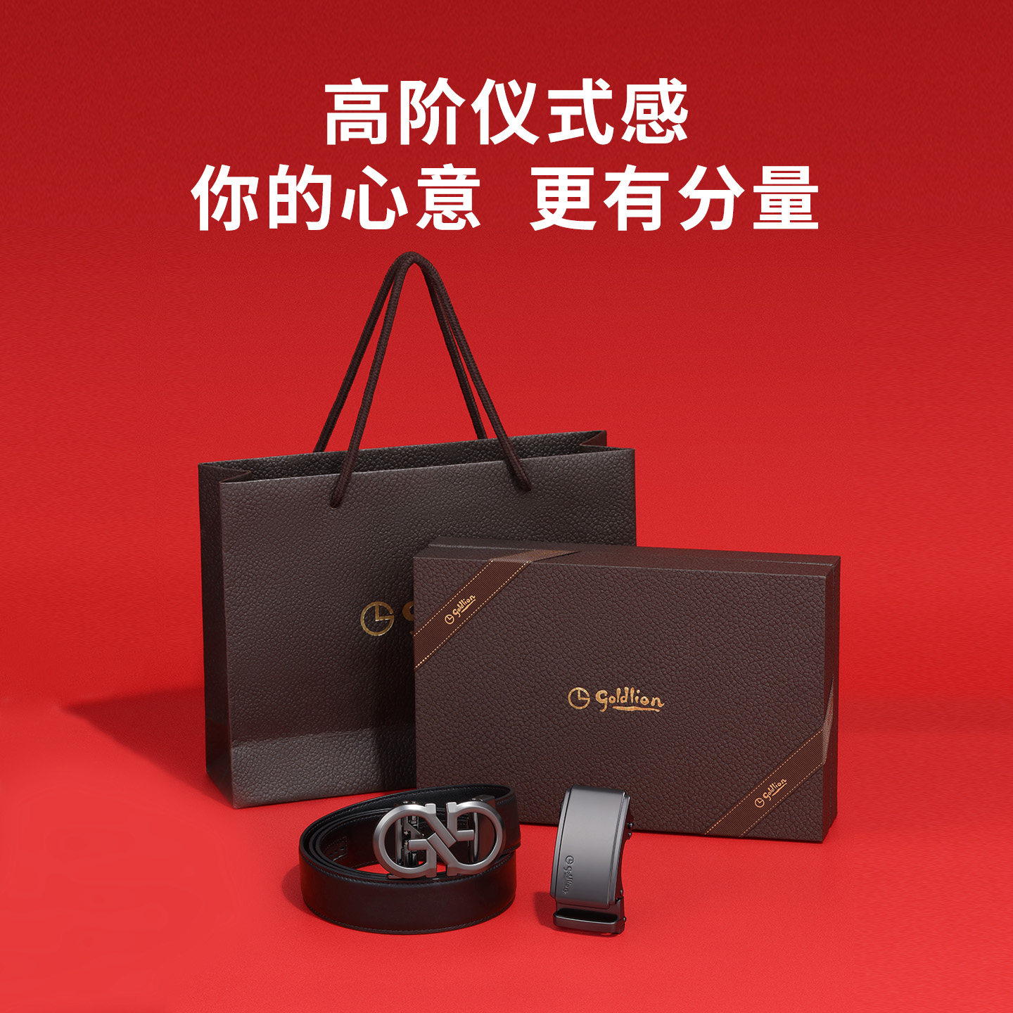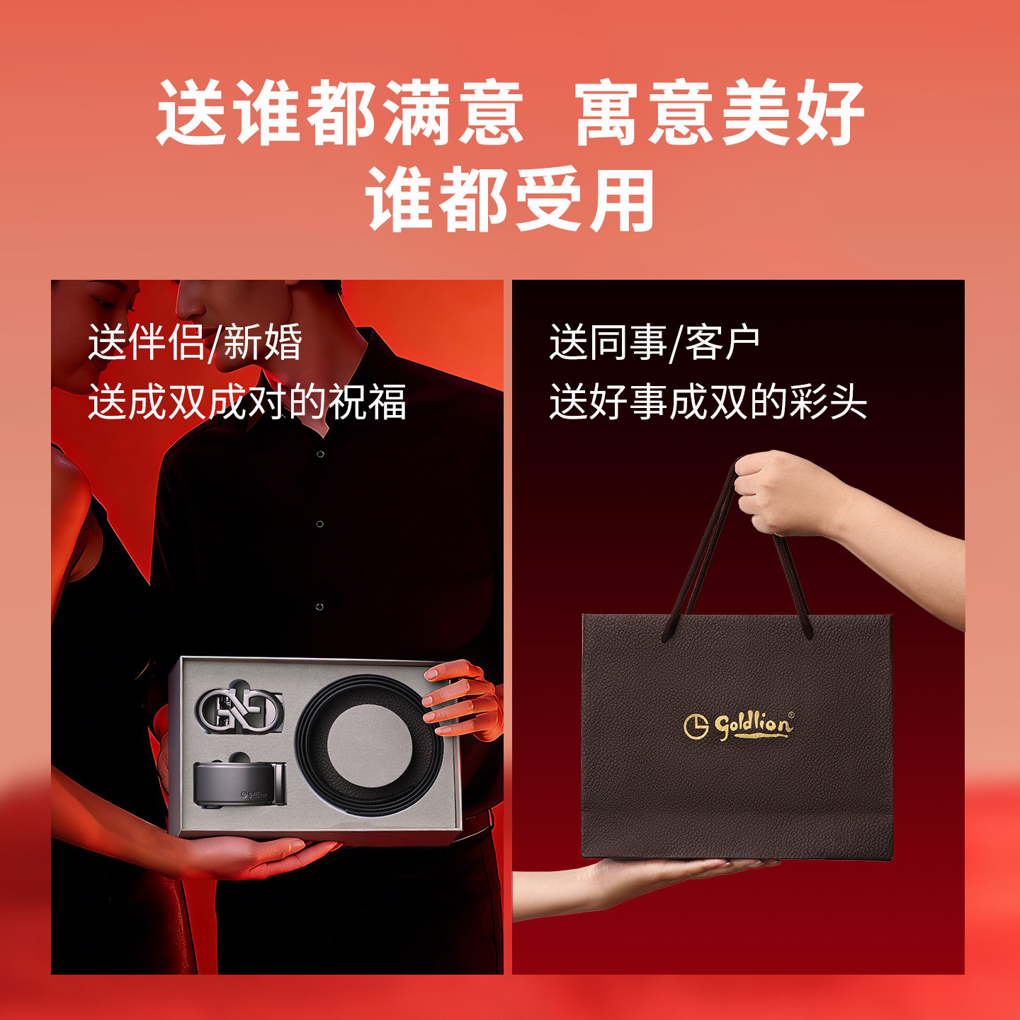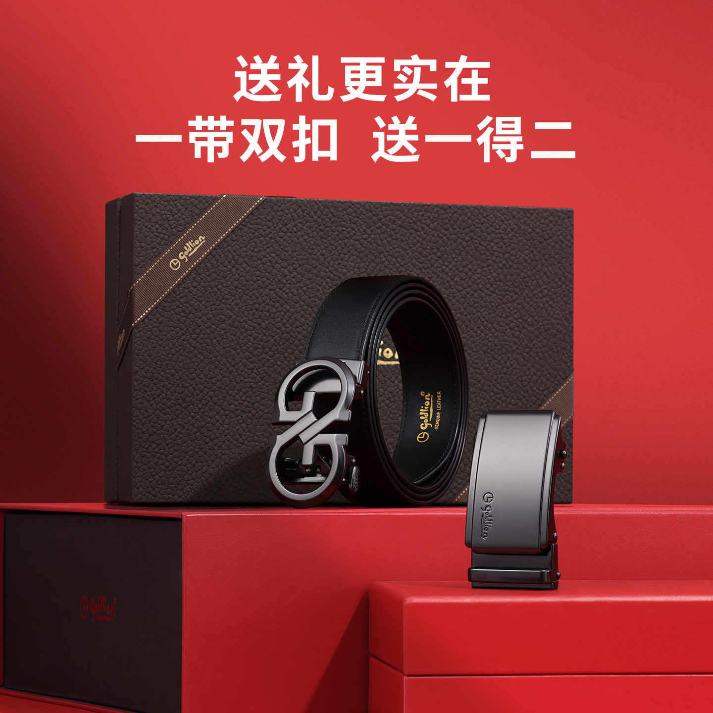 【新年礼物】金利来皮带男士商务双扣头皮带礼盒头层牛皮裤腰带男