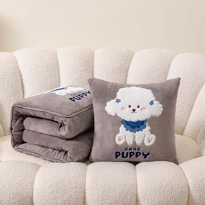 加厚牛奶绒小狗抱枕被子两用办公室客厅手提午休毯折叠学生靠垫冬