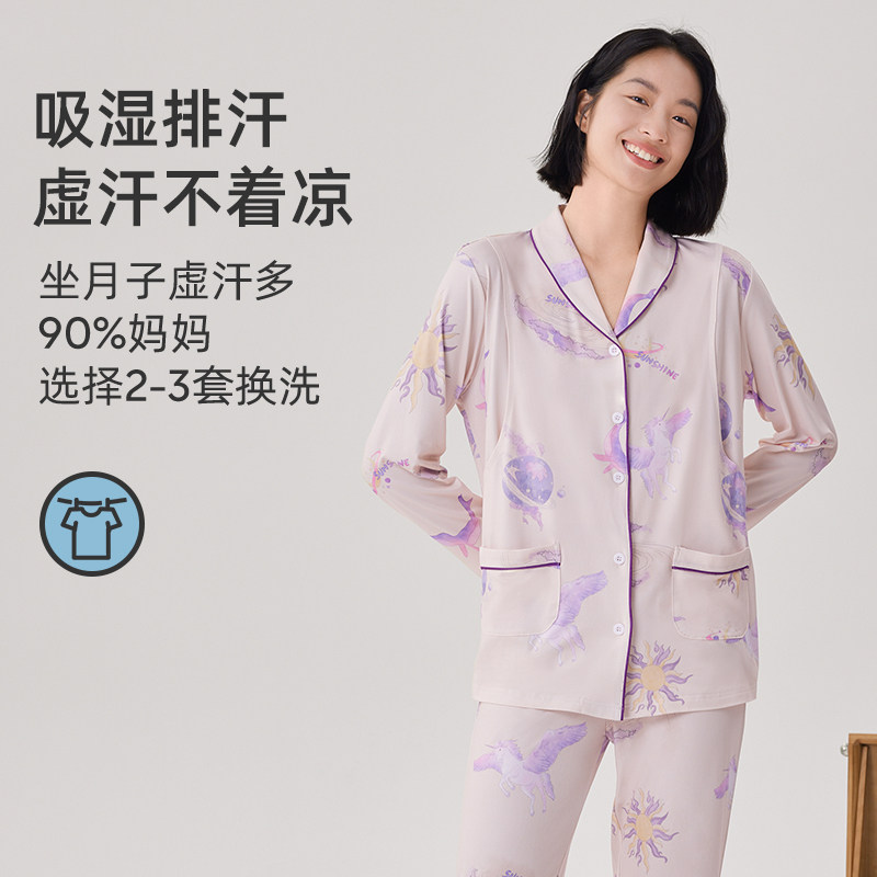婧麒云慕丝月子服夏季薄款产后喂奶哺乳家居服孕妇睡衣女春秋款