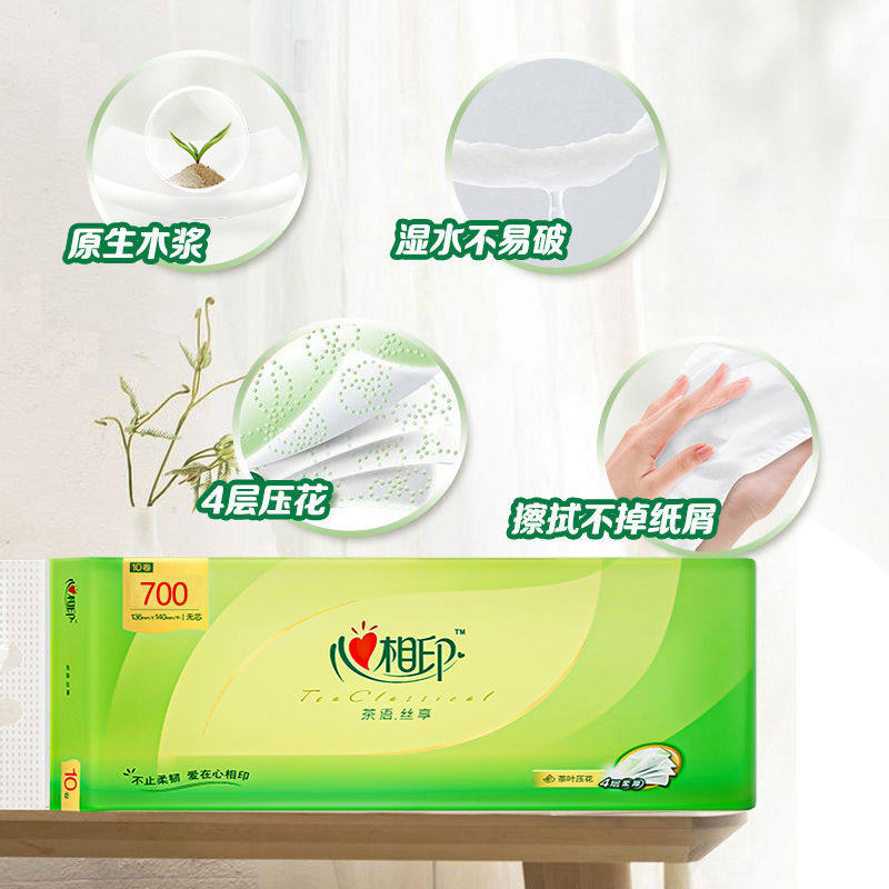 心相印卷纸4层2000克茶语无芯卷筒纸巾家用厕纸手大卷卫生纸批发
