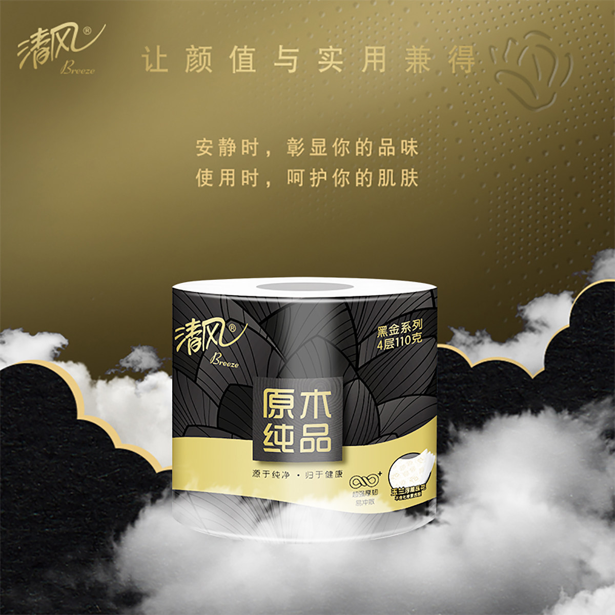 清风黑金有芯卷纸原木4层加厚手纸卷筒纸厕纸实惠装卫生纸易冲散