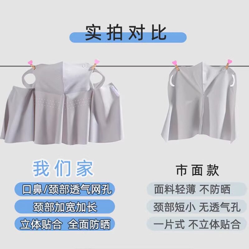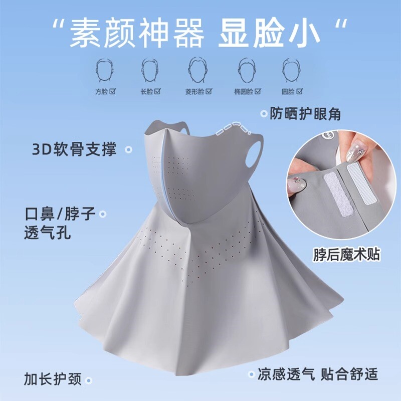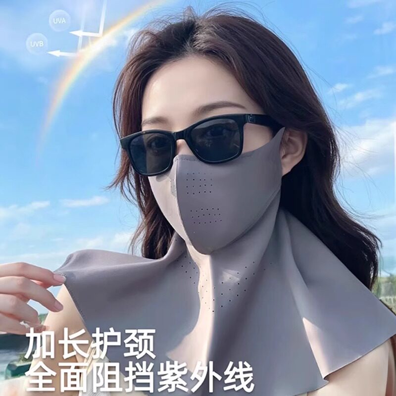 无痕防晒面罩女夏季冰丝薄款遮脖子防紫外线护颈一体遮阳全脸口罩