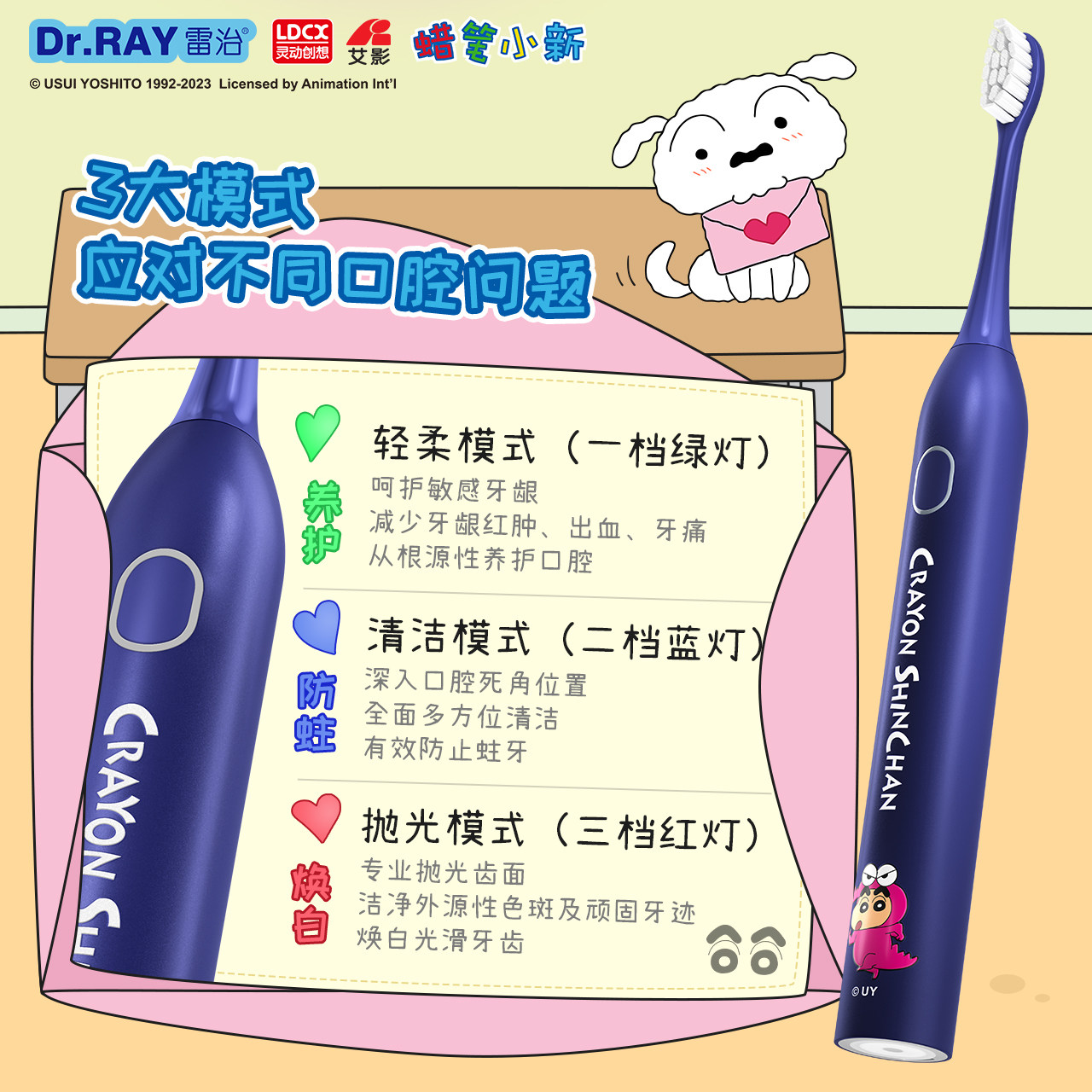 雷治蜡笔小新联名声波电动牙刷套装礼盒成人男女自动牙刷朋友姐姐