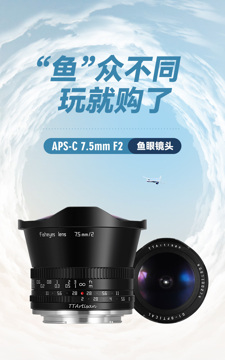 铭匠7.5mm f2.0鱼眼镜头适用于索尼E富士X尼康Z松下佳能R