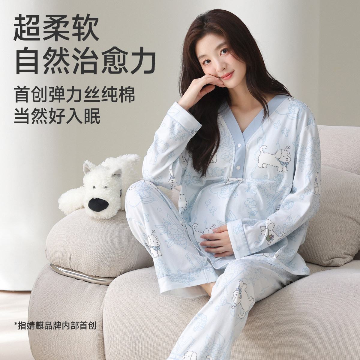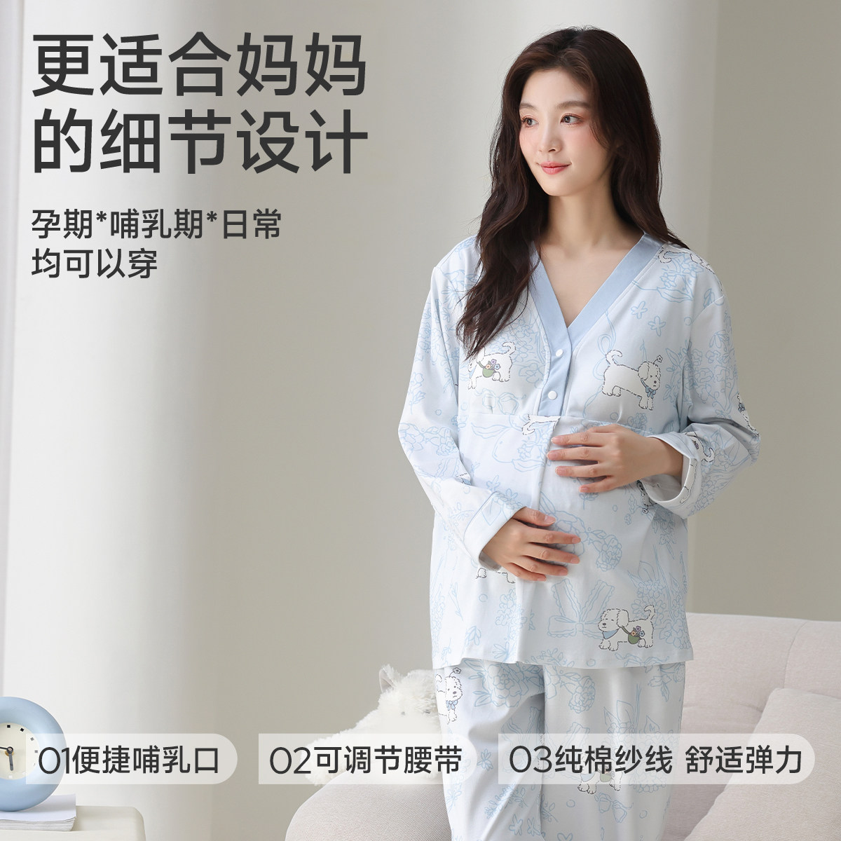 婧麒云慕丝月子服产后秋冬季纯哺乳家居服棉怀孕产妇孕妇睡衣套装