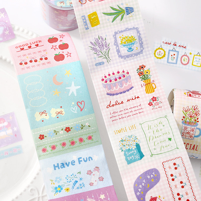 信的恋人 5cm超宽模切和纸胶带《随心涂鸦绘》韩系可爱线条文艺格纹小插画装饰手帐拼贴素材胶带贴纸索引封口