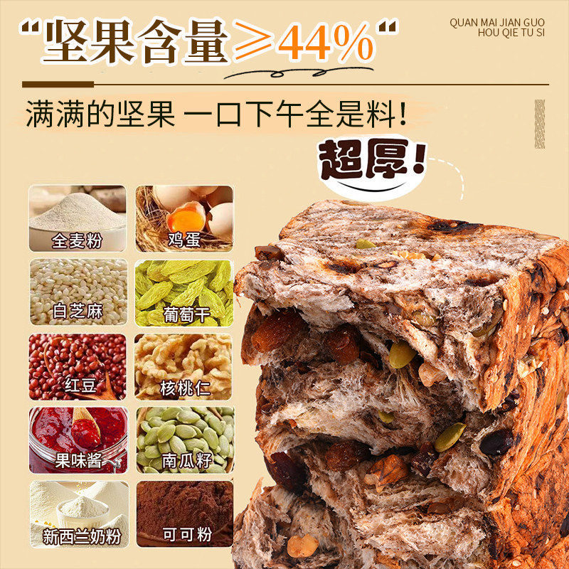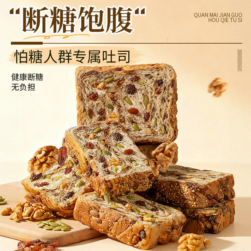 全麦坚果面包无糖0脂厚切吐司减早餐0添加专用肥官方旗舰店代餐