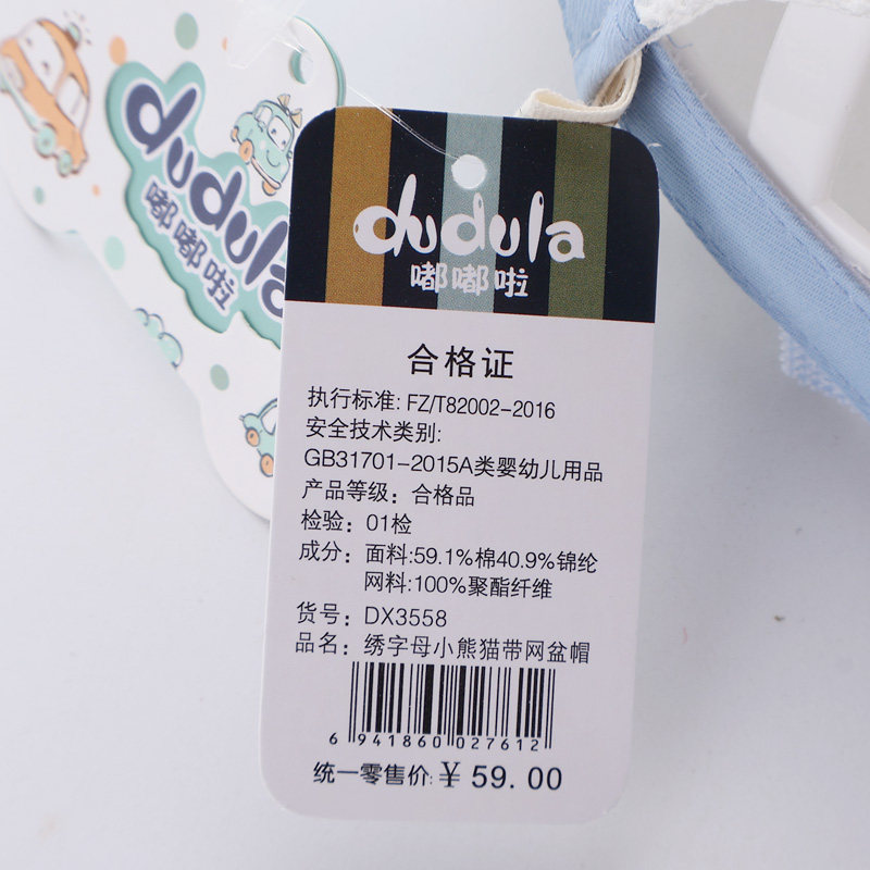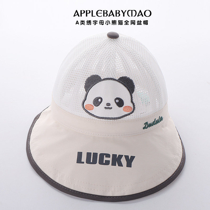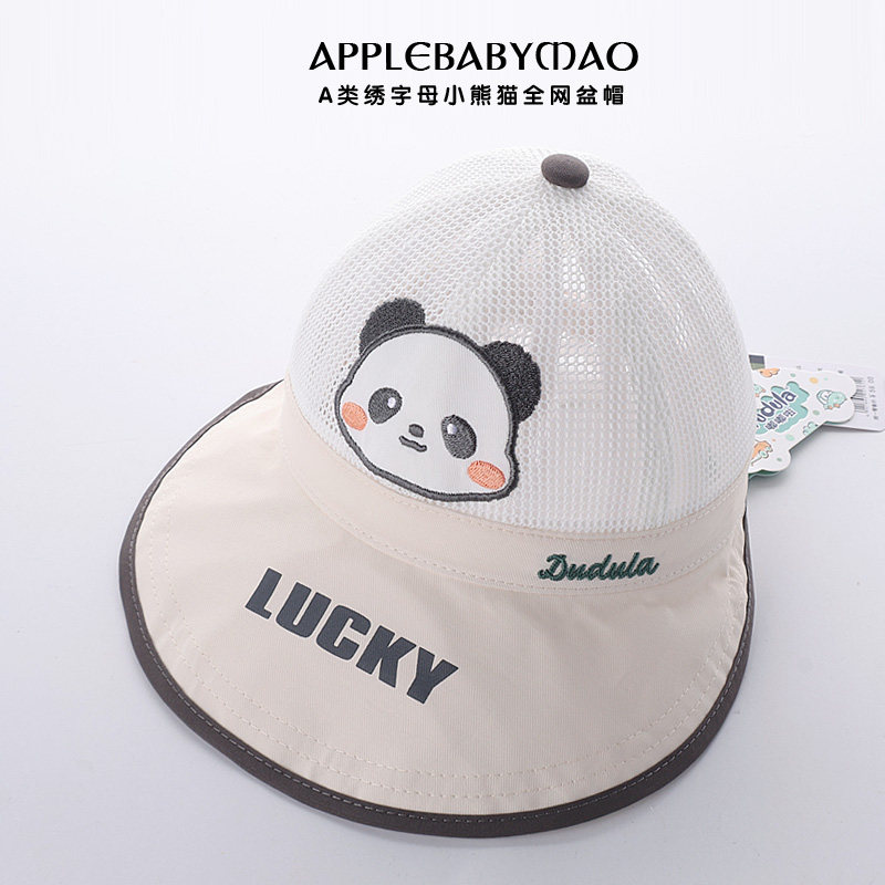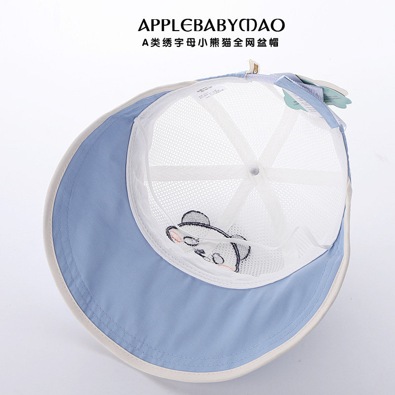 嘟嘟啦夏季男女宝宝渔夫帽儿童遮阳帽可爱卡通熊猫防晒透气大帽檐