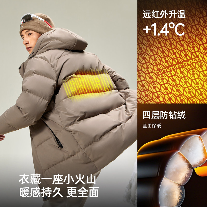 骆驼男装三防羽绒服男冬季2024新款中长款连帽加厚保暖爸爸外套