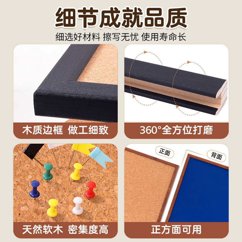 木框软木板照片墙贴毛毡展示板家用挂墙留言板软木diy创意愿景展板照片墙板便利贴记事板墙面相片图钉公告栏