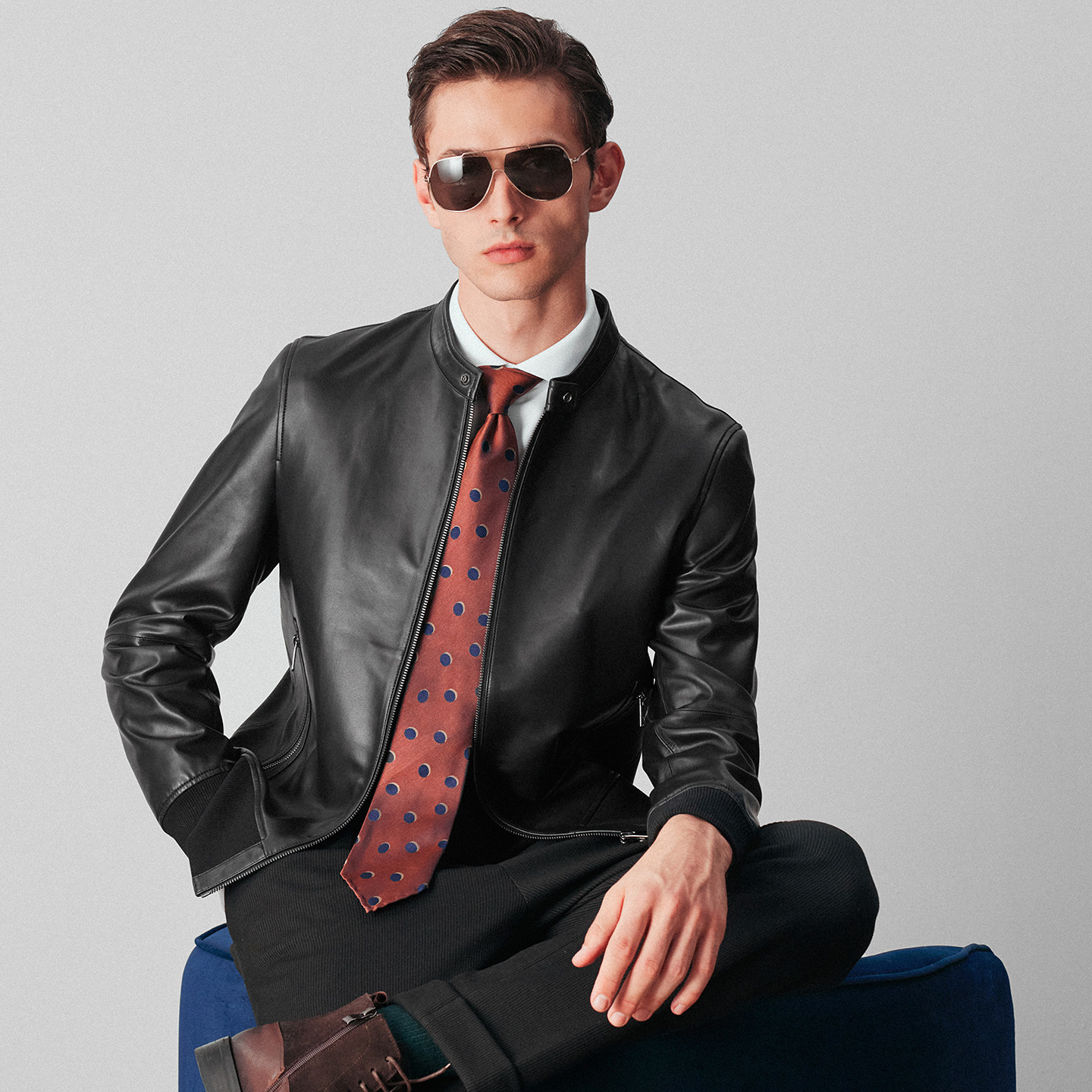 【绵羊皮】九牧王翻领皮衣外套男秋冬真皮修身商务立领皮夹克男装