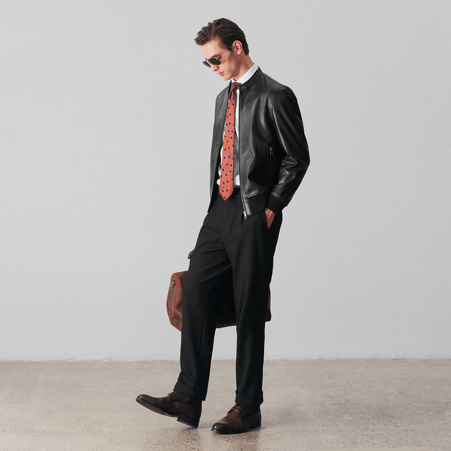 BODYDREAM复古做旧皮衣外套男街头廓形休闲通勤翻领夹克/挺阔抗皱