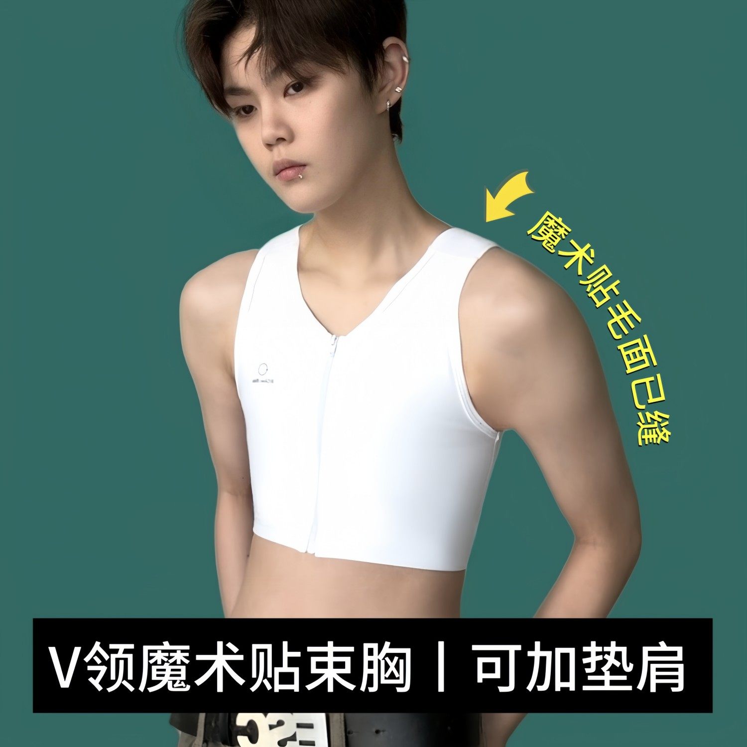 COS束胸低领v领魔术贴内搭DIY显小内衣超平防凸透气大胸显小裹胸