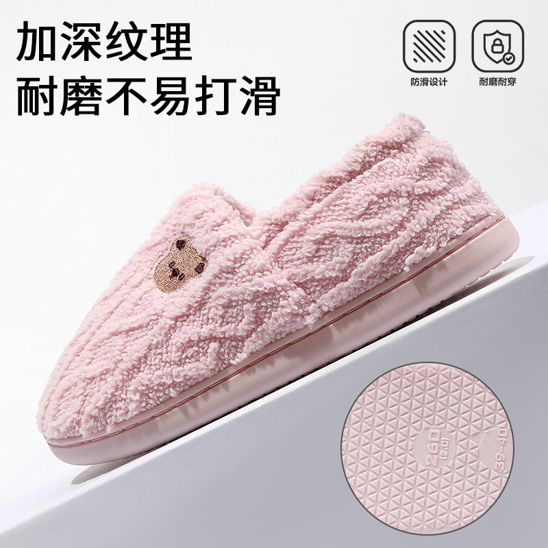 棉拖鞋女秋冬季月子室内家居家防滑厚底踩屎感毛毛绒保暖情侣男士