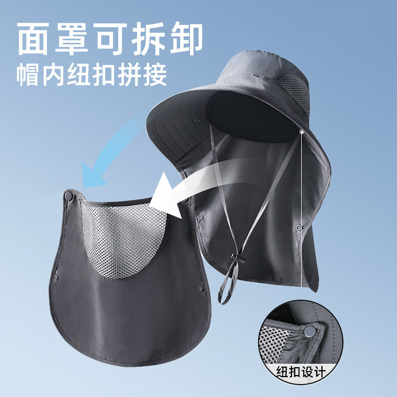 渔夫帽子男士夏季户外遮脸面罩一体帽钓鱼防晒遮阳登山帽防紫外线