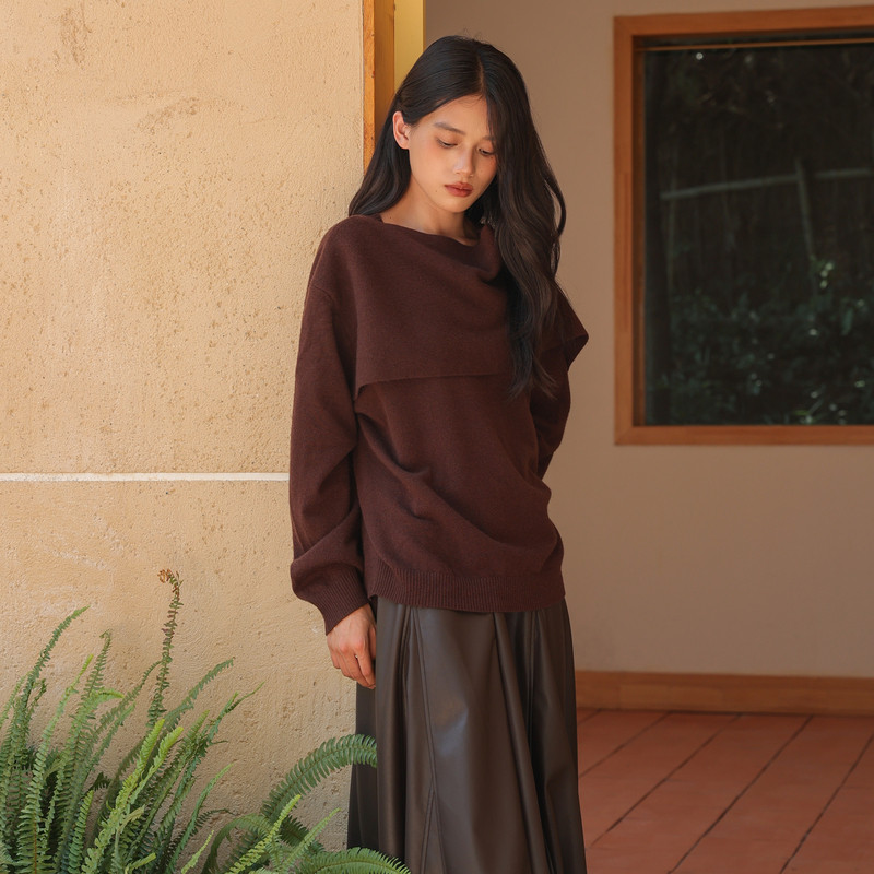 黑标BAIZHUO商场同款25秋新款休闲宽松围巾领羊毛针织衫AZ53MS271